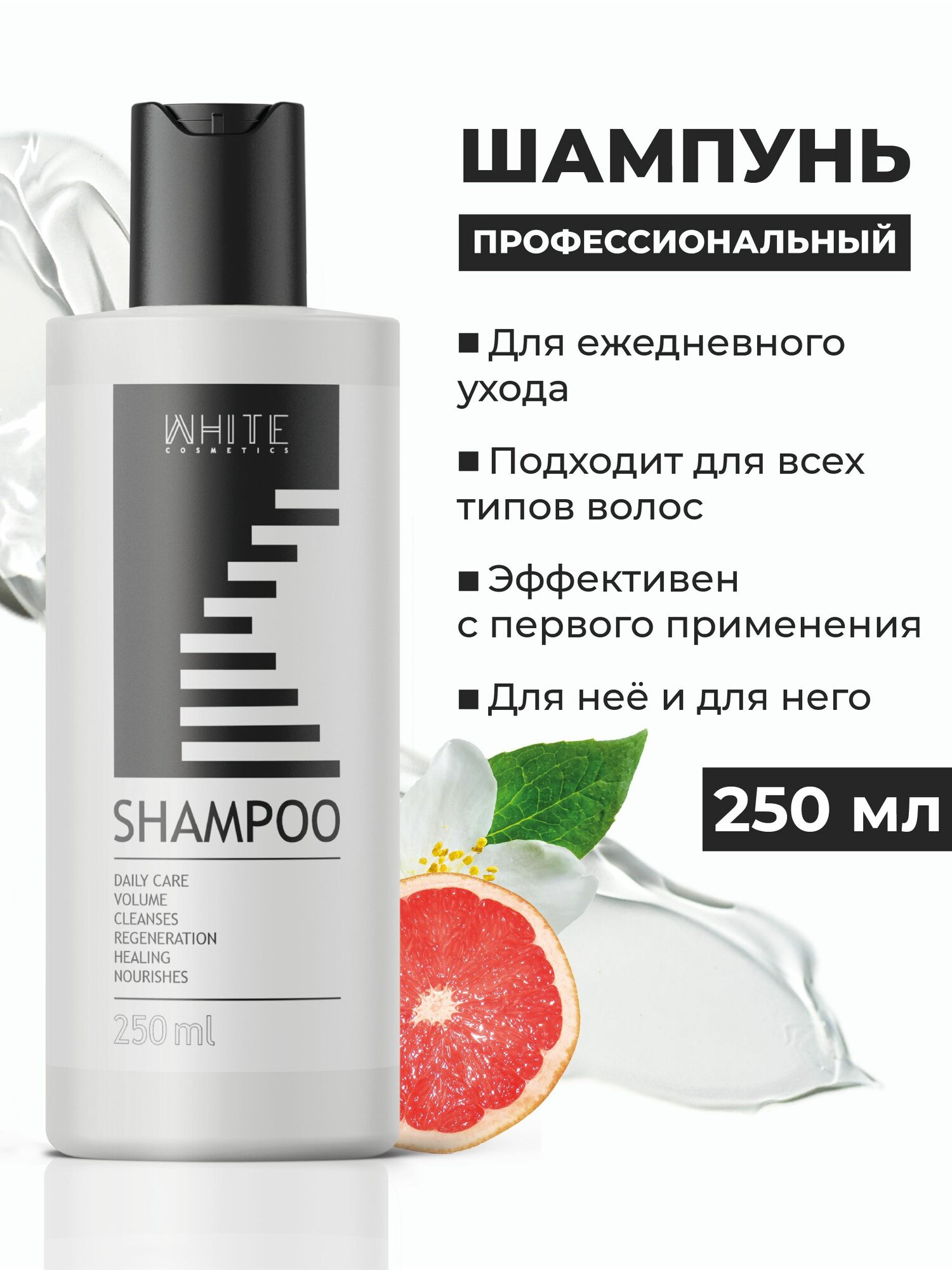 WHITE Профессиональный шампунь 250 мл. для волос. Уход, рост, восстановление интересное: