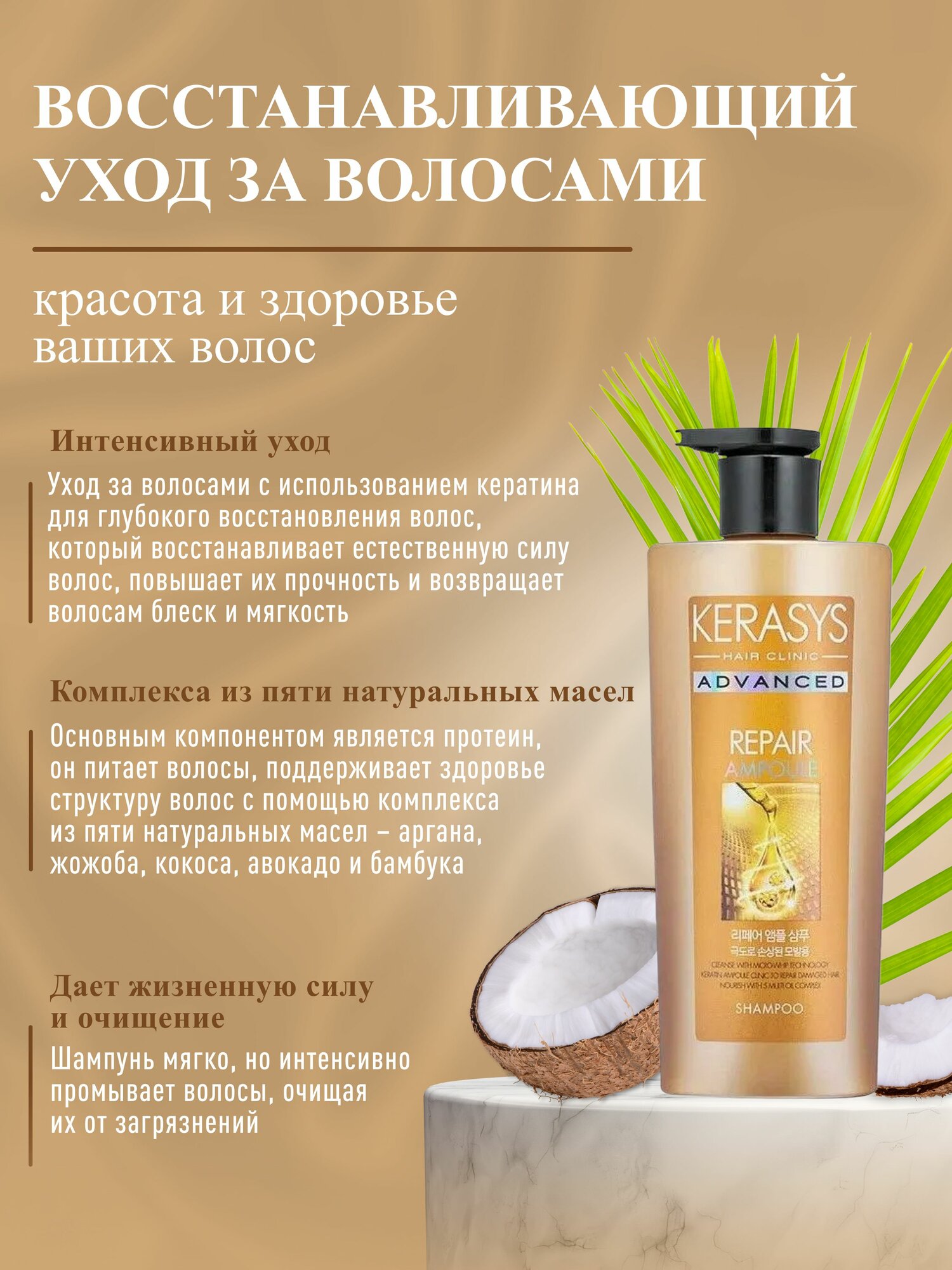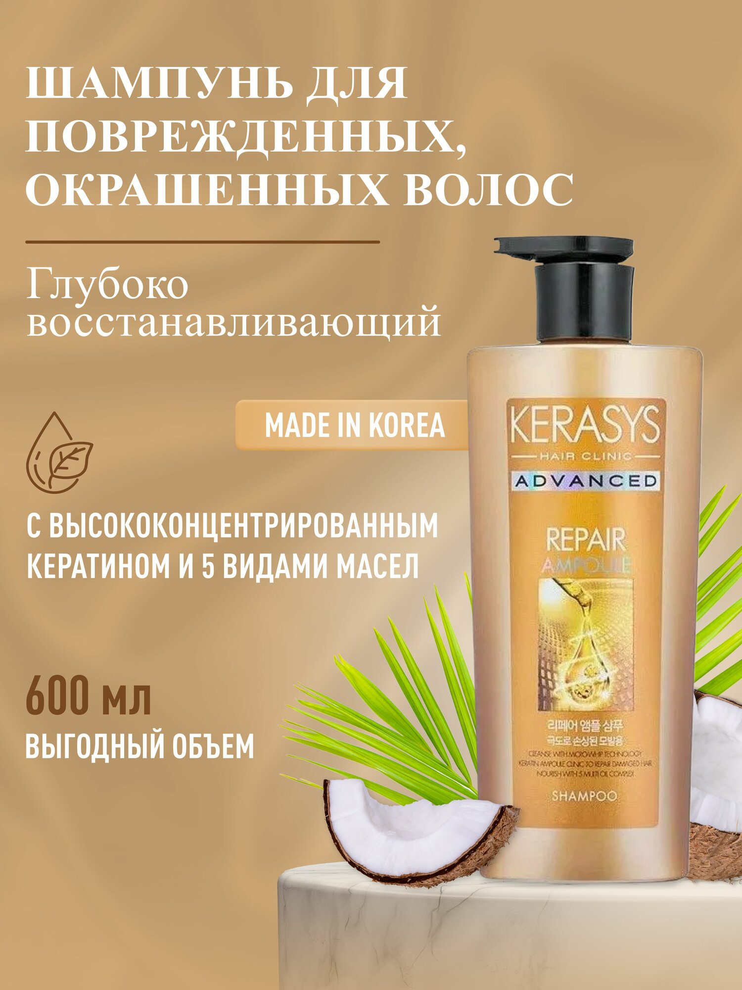 Шампунь для волос женский Kerasys Корея 600 мл ампульный с кератином для ухода за поврежденными и окрашенными волосами Advanced Ampoule Shampoo интересное: