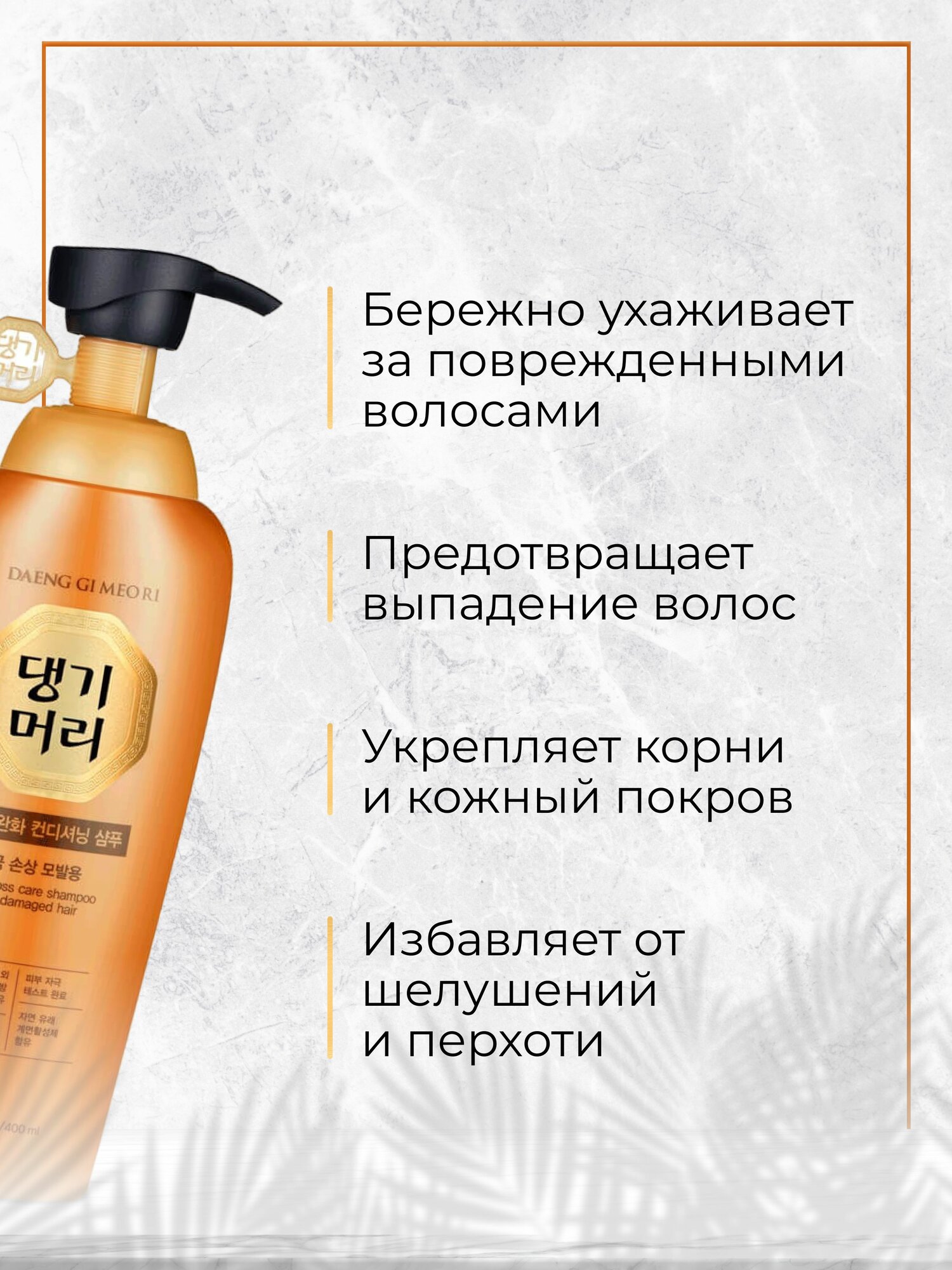 Шампунь для волос женский укрепляющий Корея, DAENG GI MEO RI, 400 мл для поврежденных волос интересное: