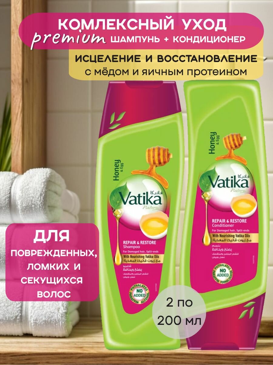 Шампунь и бальзам для волос "Исцеление и Восстановление" по 200 мл (Repair & Restore) Vatika интересное: