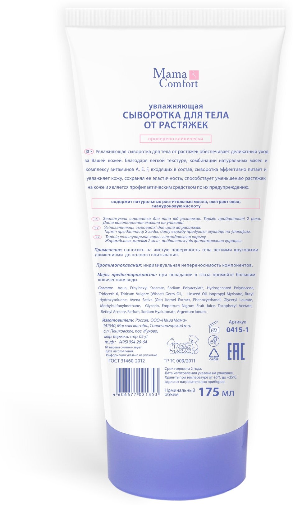 Mama Comfort Увлажняющая сыворотка для тела от растяжек для беременных, гипоаллергенное, 175мл интересное: