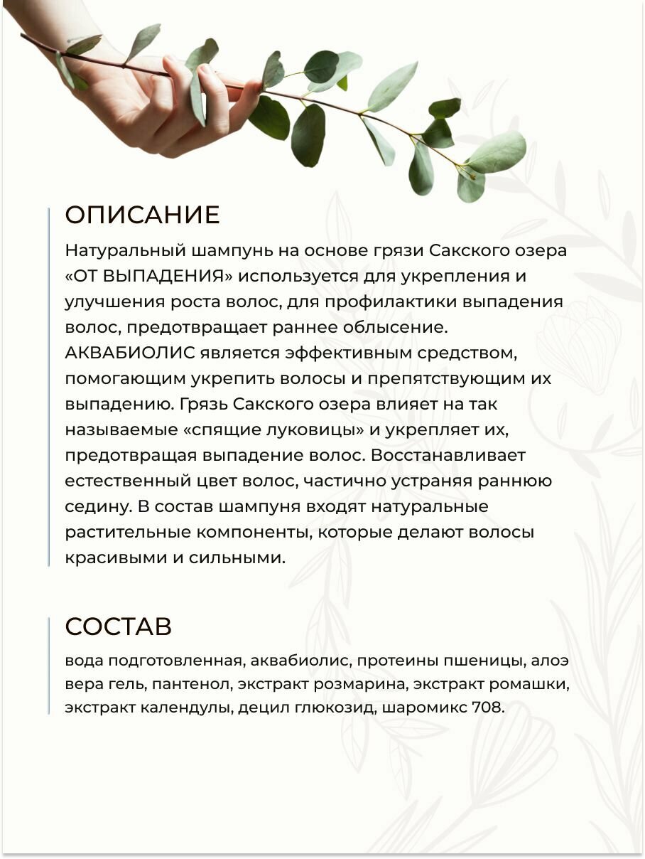 Шампунь бессульфатный от выпадения волос с грязью Сакского озера активатор роста Аквабиолис, 200 мл интересное: