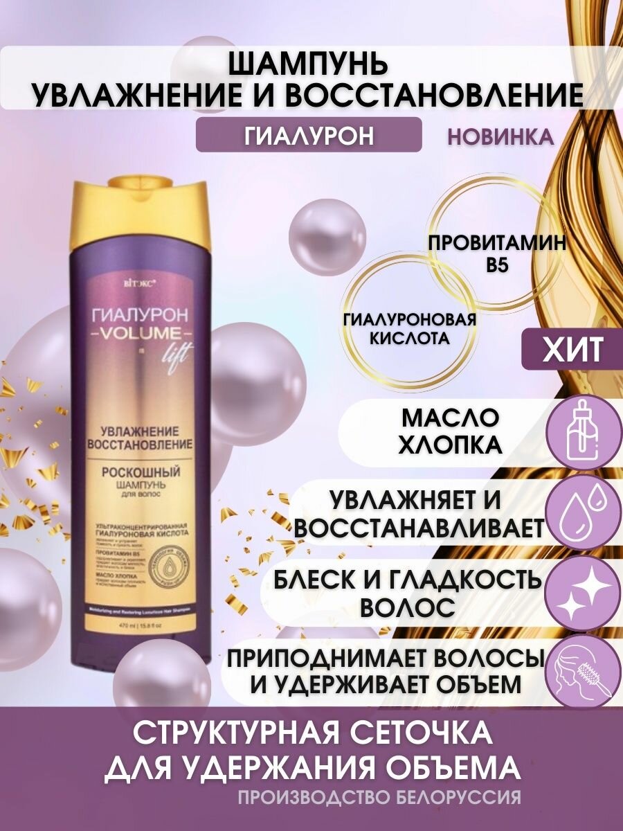 Витэкс Шампунь гиалурон GOLD для волос VOLUME Lift увлажнение и восстановление, 470 мл интересное: