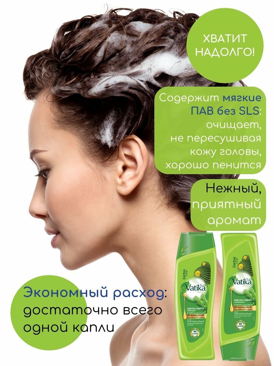Шампунь для волос женский против выпадения с кактусом 532 мл Vatika (Hair Fall Control) интересное: