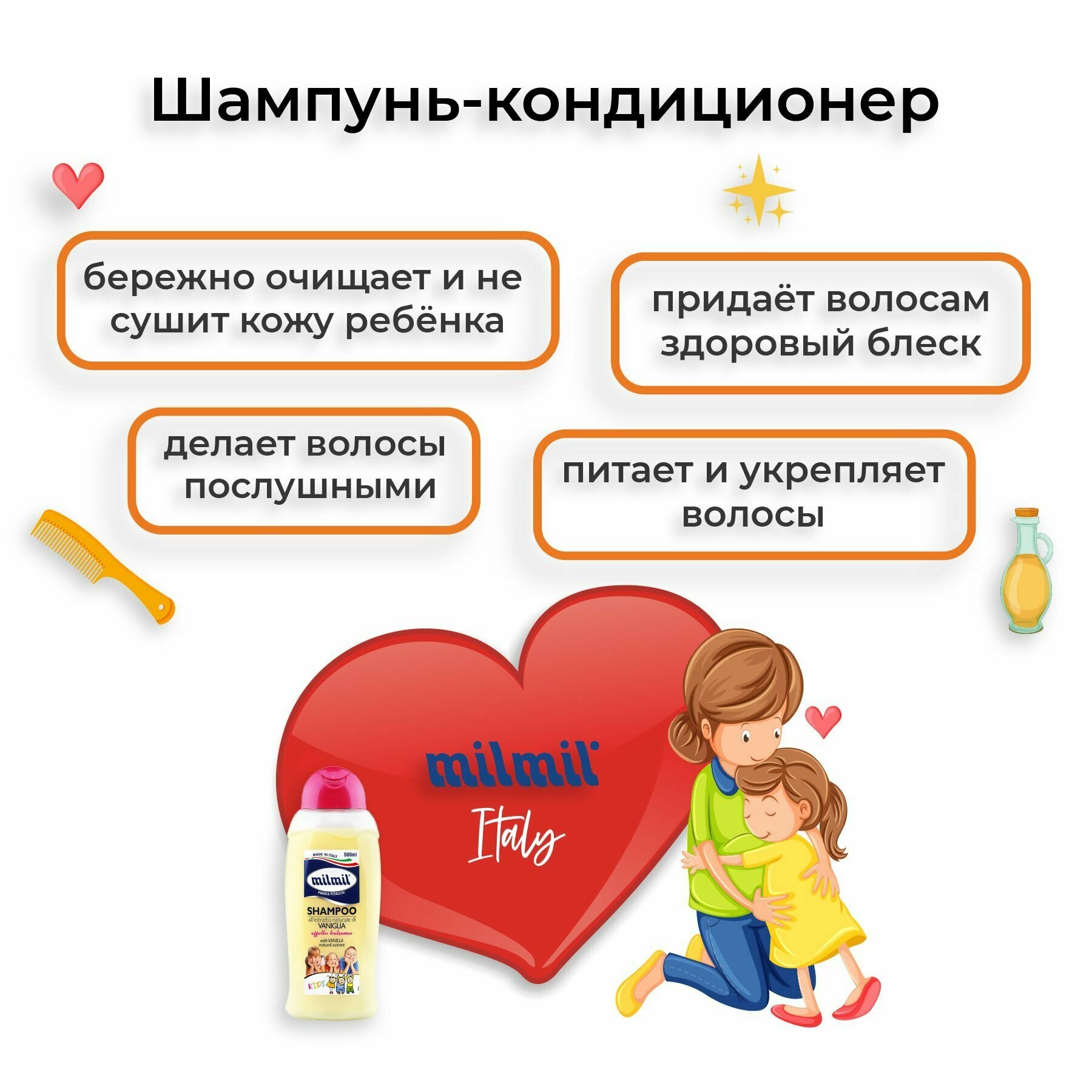 Mil Mil Детский шампунь и кондиционер для волос 2 в 1 с экстрактом ванили 500 мл интересное:
