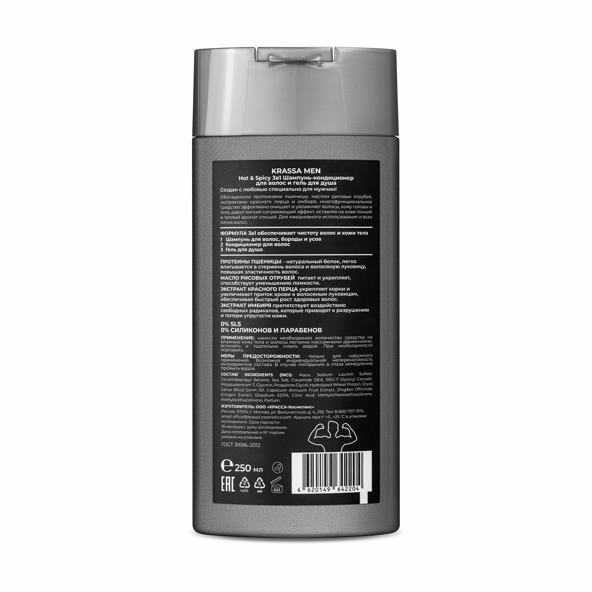 Купить Шампунь мужской + кондиционер для волос и гель для душа 3в1 KRASSA MEN Hot & Spicy 3в1, 250 мл