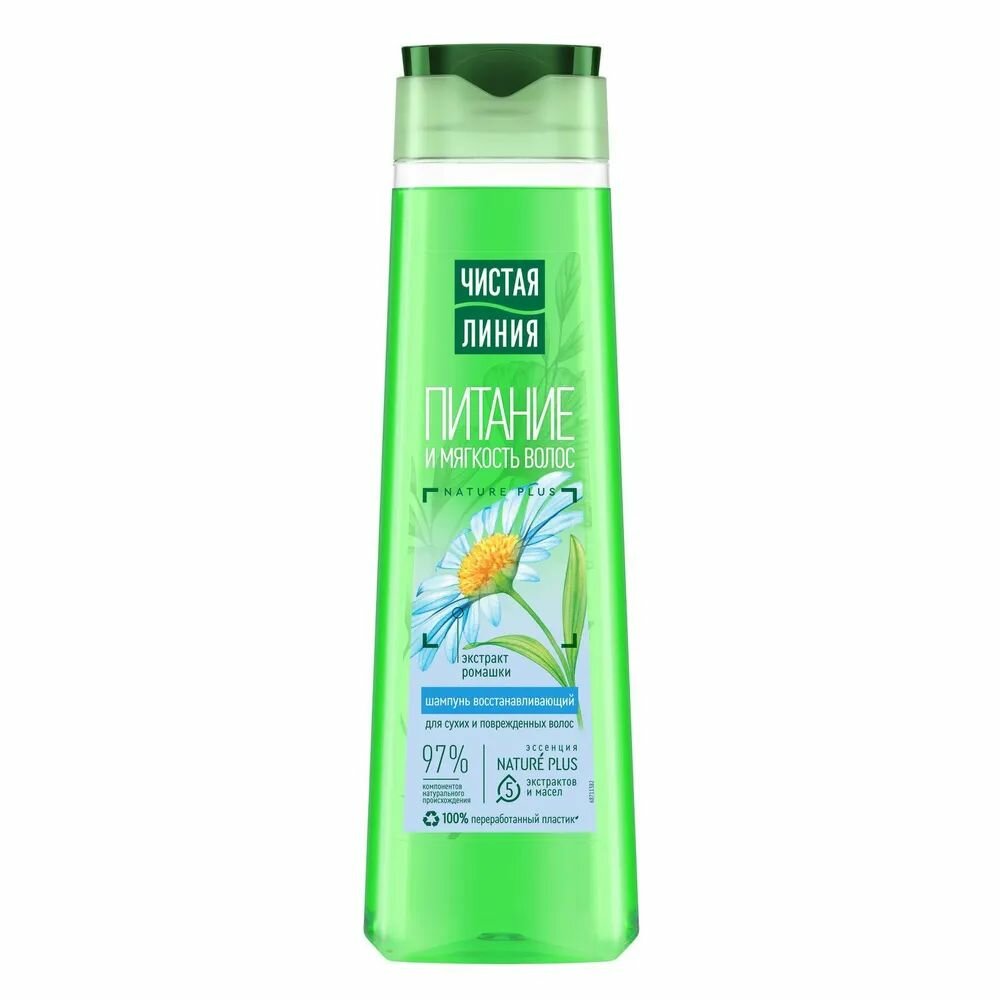 Купить Шампунь для волос Чистая Линия Питание и мягкость для сухих и поврежденных волос с экстрактом ромашки, 400 мл