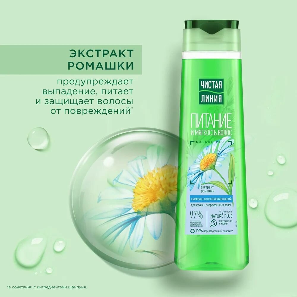 Шампунь для волос Чистая Линия Питание и мягкость для сухих и поврежденных волос с экстрактом ромашки, 400 мл интересное: