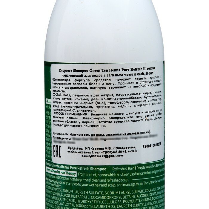 Deoproce Смягчающий шампунь для волос с зеленым чаем и хной Green Tea Henna Pure Refresh Shampoo, 200 мл интересное: