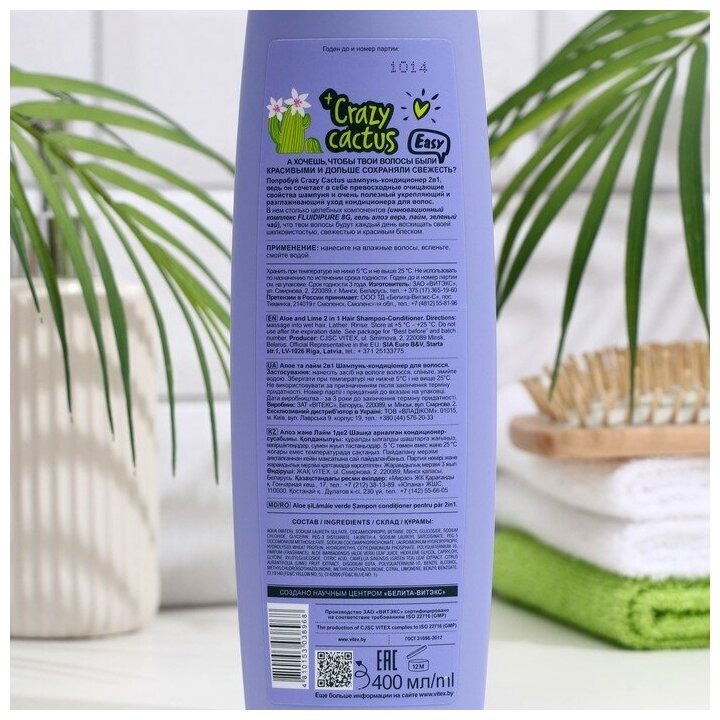Купить Витэкс #LikeMe Crazy cactus Шампунь-кондиционер 2 в 1 для волос Алоэ и лайм 400 мл