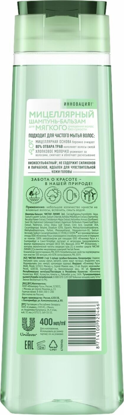 Купить Шампунь - бальзам 2в1 Чистая Линия 400мл 67267515