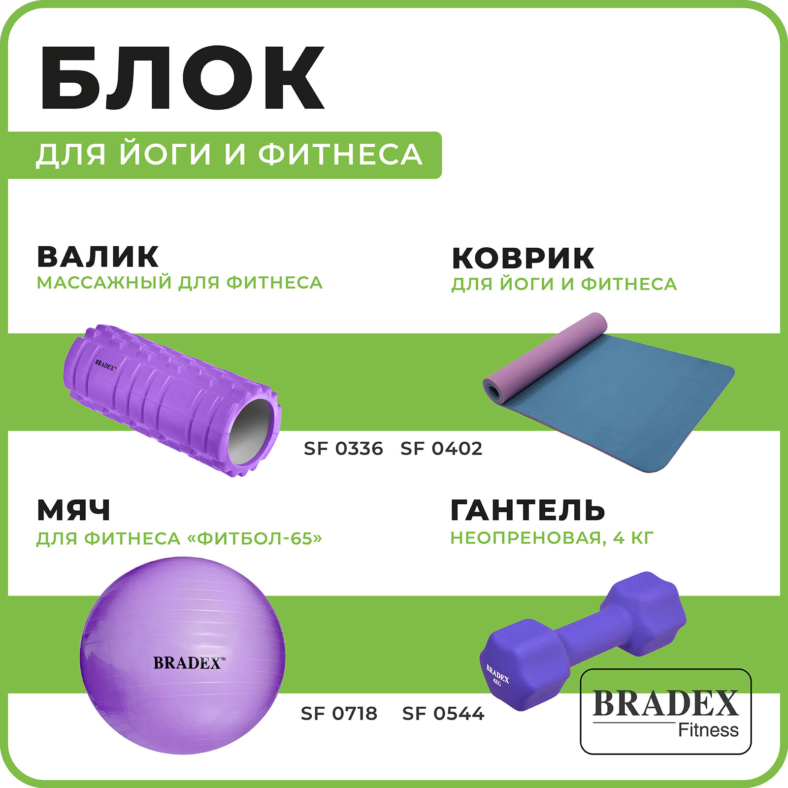 Блок для йоги BRADEX SF 0409 фиолетовый