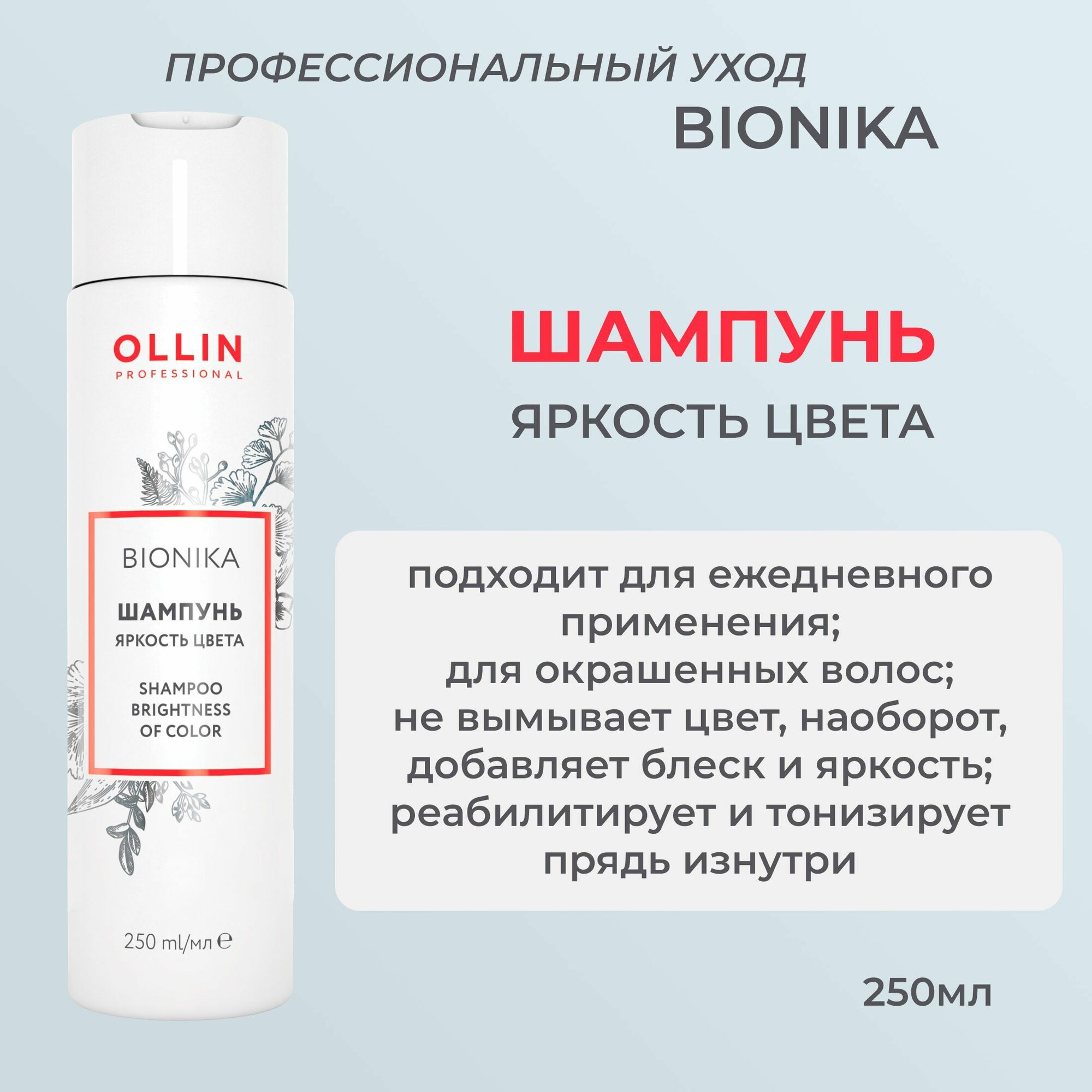 Ollin BioNika Шампунь для окрашенных волос Яркость цвета Shampoo For Colored Hair 250мл интересное: