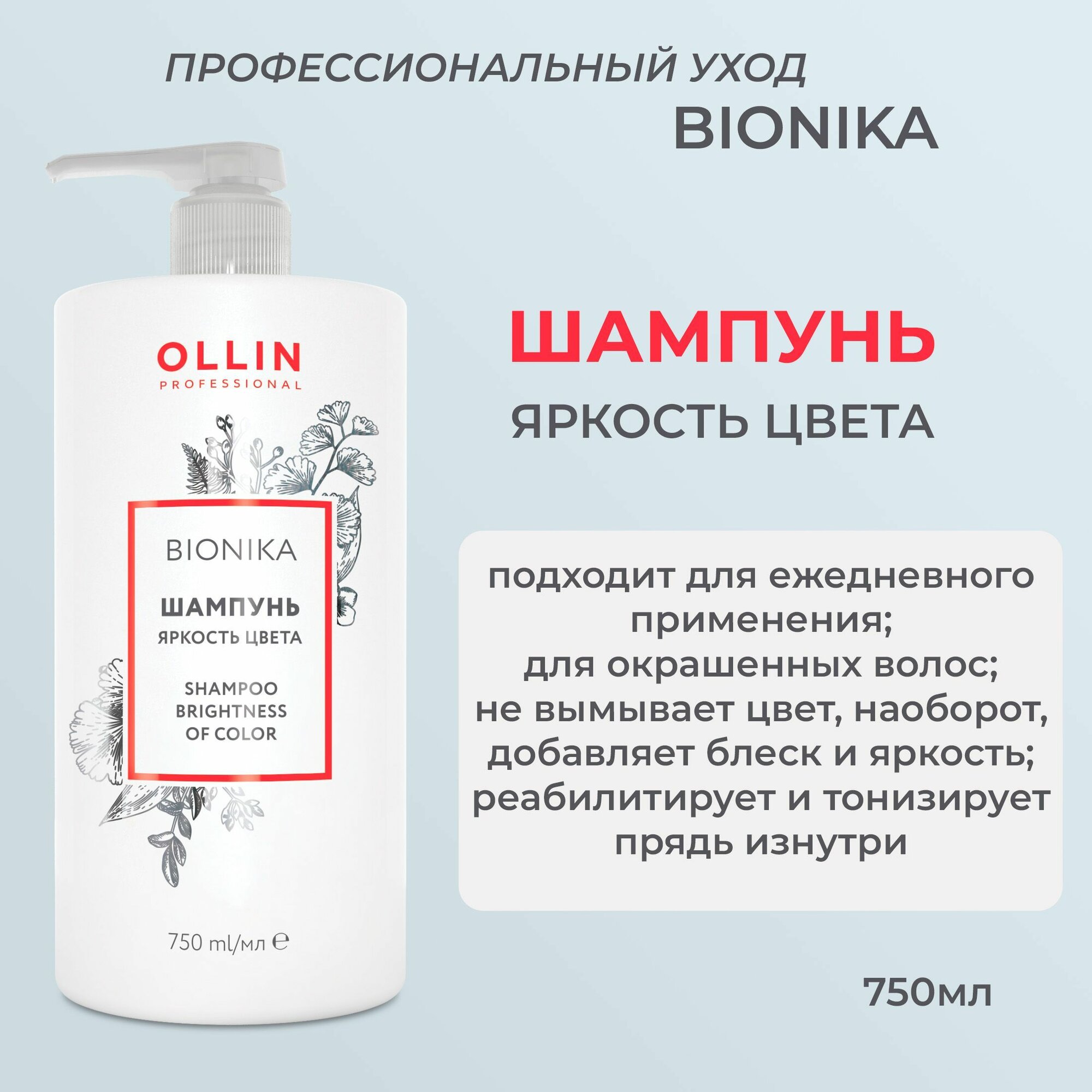 Ollin BioNika Шампунь для окрашенных волос Яркость цвета Shampoo For Colored Hair 750мл интересное: