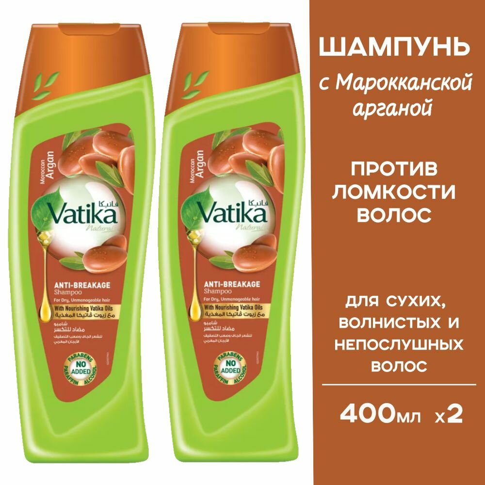 Шампунь для волос женский с маслом арганы "Мягкое увлажнение" Vatika 400 мл, 2 шт. (Argan) интересное: