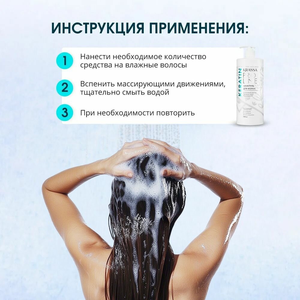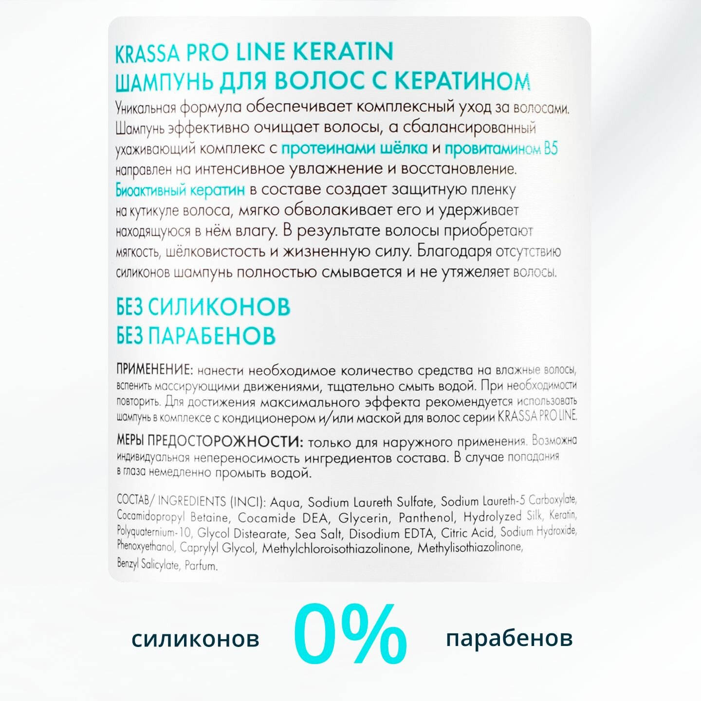Шампунь для волос женский с кератином Krassa PRO-LINE, 1000мл интересное: