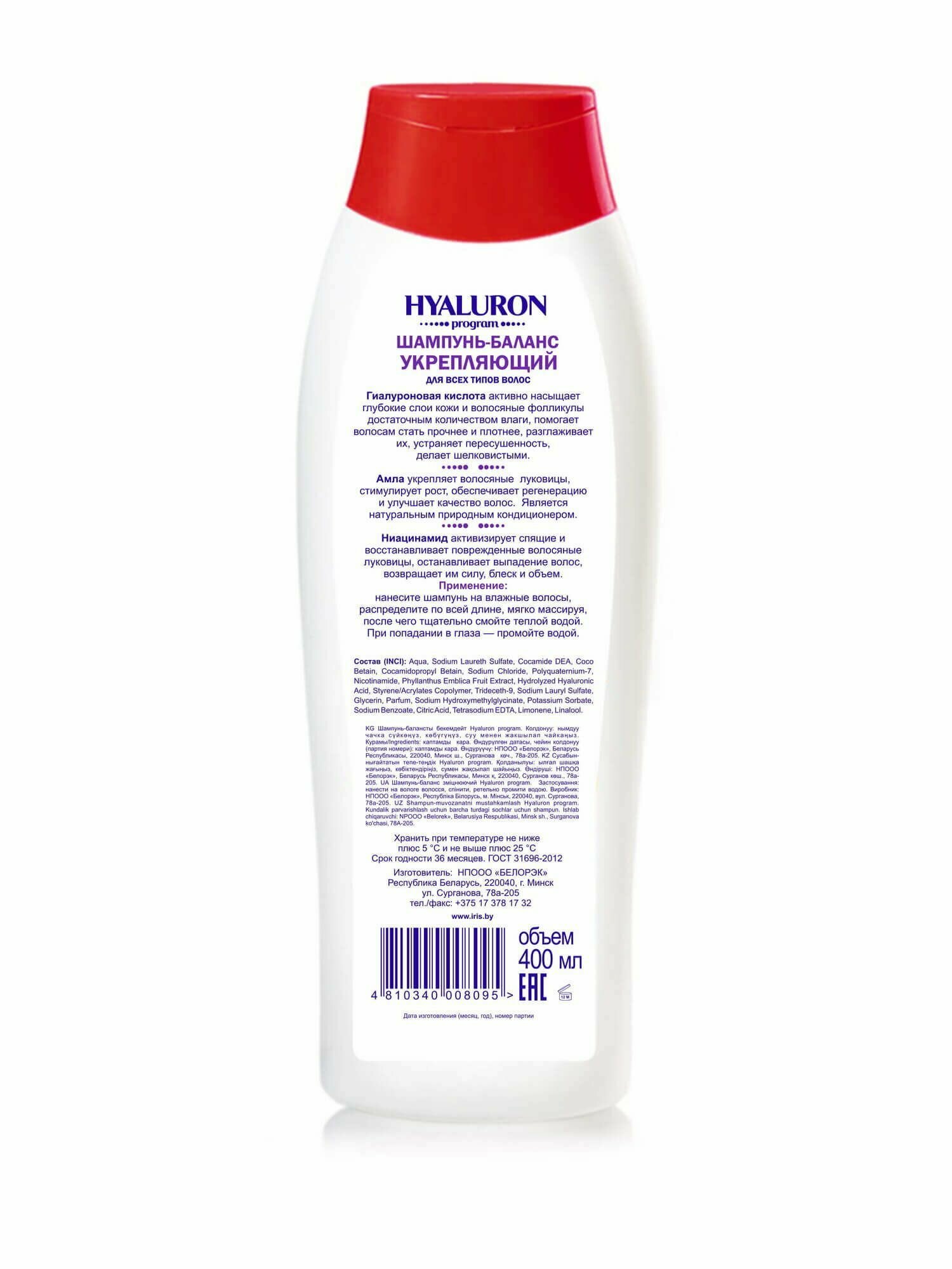Купить Iris Cosmetic Шампунь-баланс HYALURON PROGRAM укрепляющий для всех типов волос, 400 мл