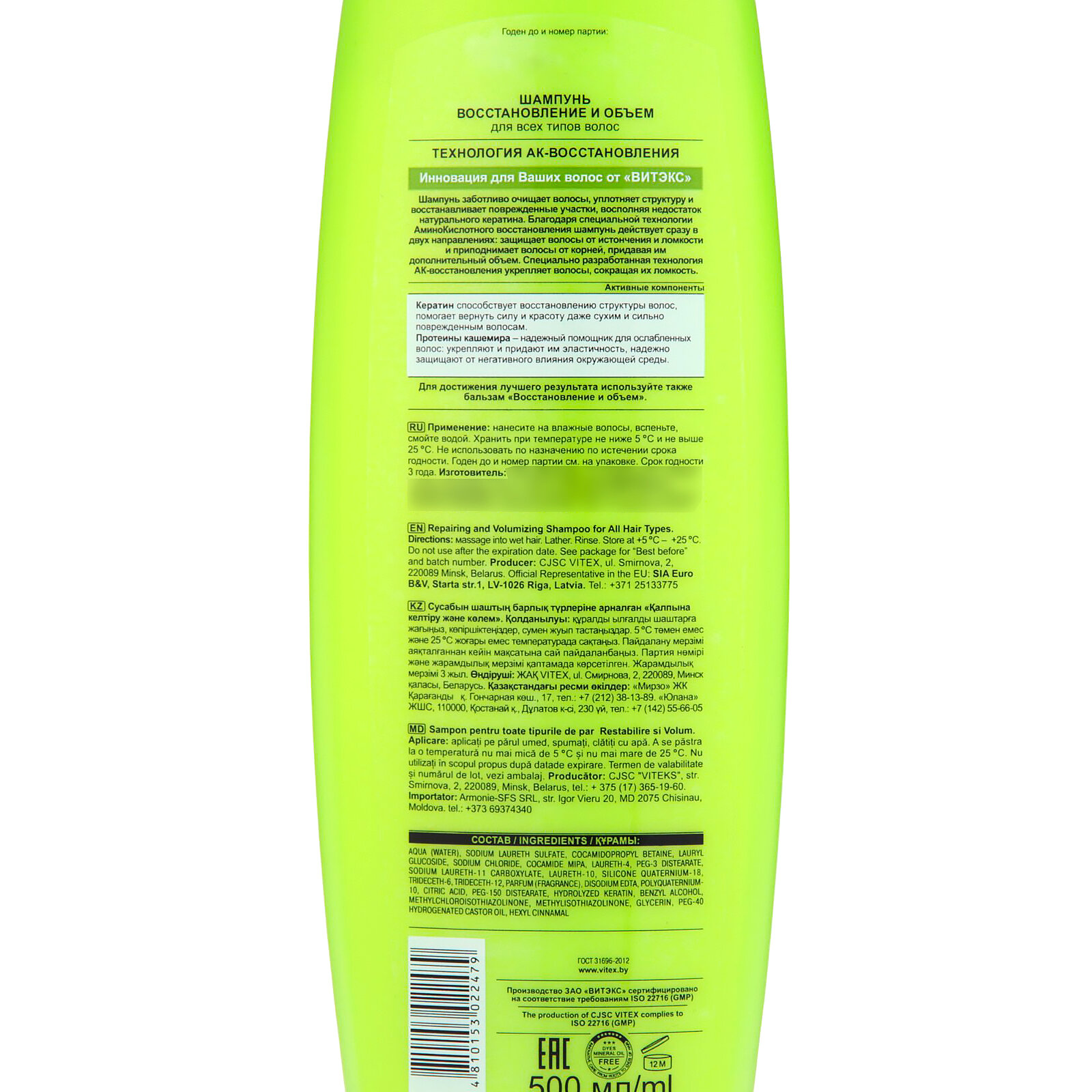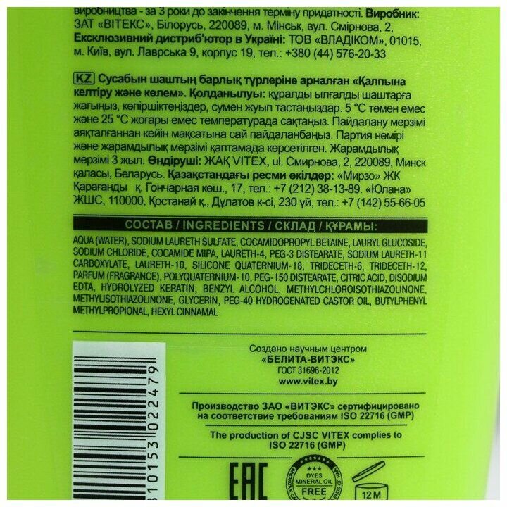 Витэкс шампунь для всех типов волос KERATIN+ Протеины кашемира Восстановление и объем, 500 мл интересное: