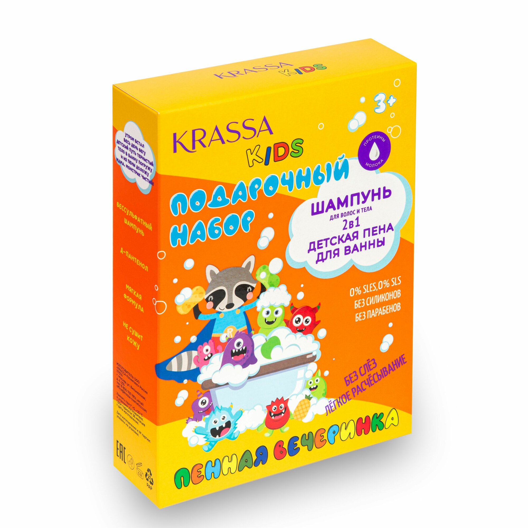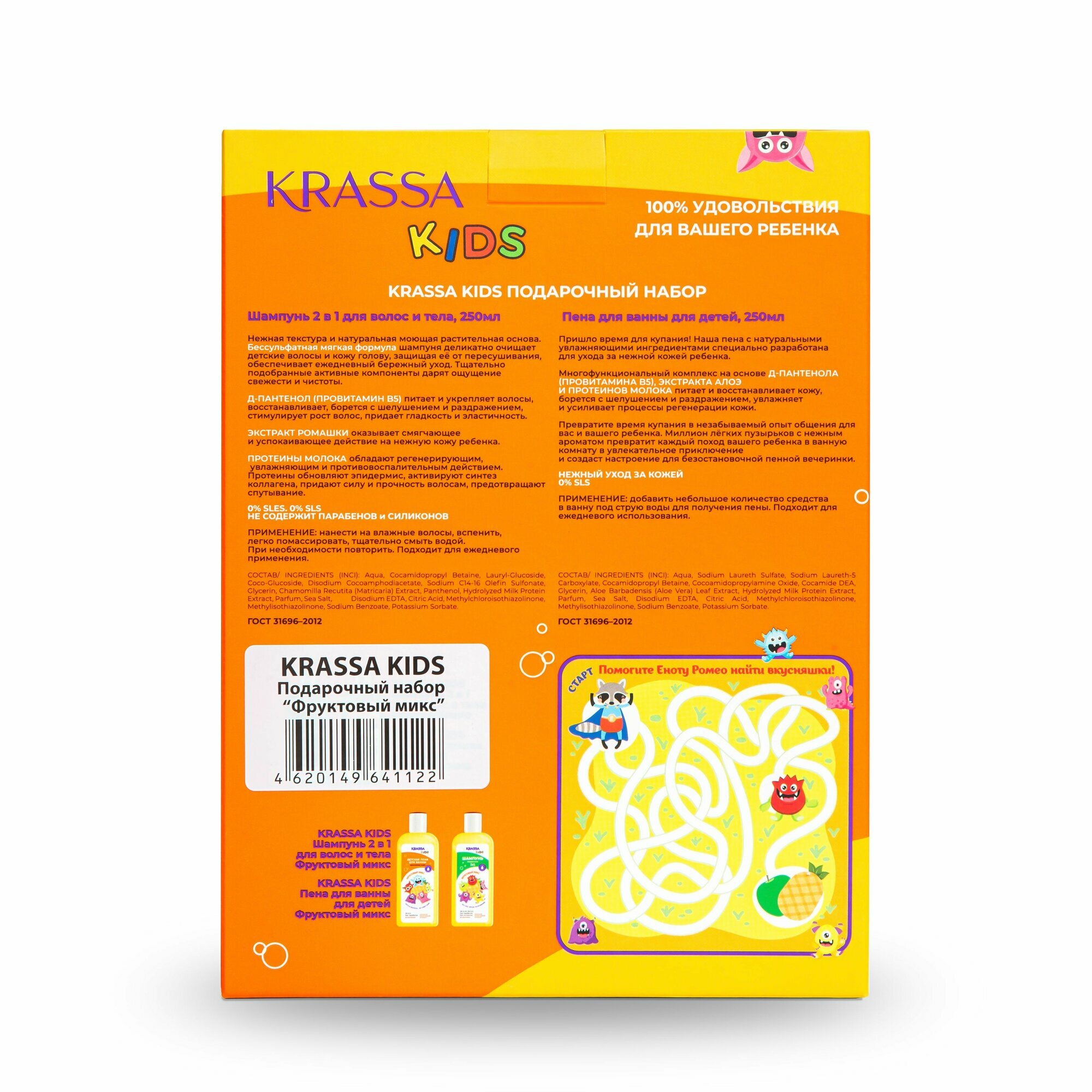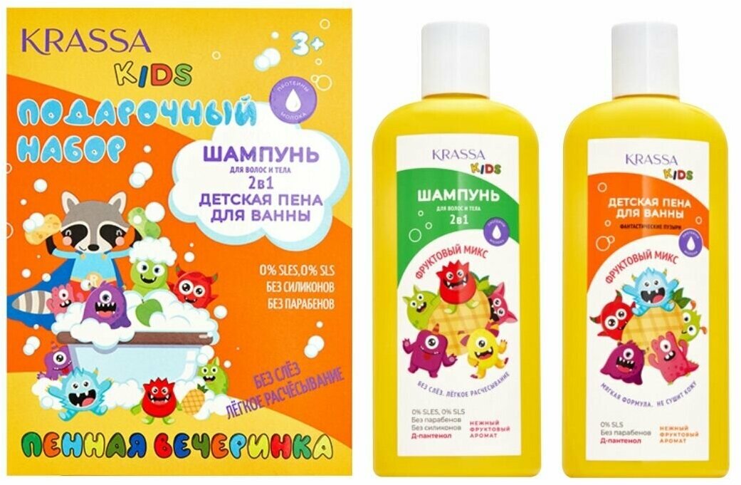 Подарочный набор KRASSA KIDS Фруктовый Микс, Шампунь детский 2в1 для тела и волос, 250 мл + Пена для ванны, 250 мл интересное: