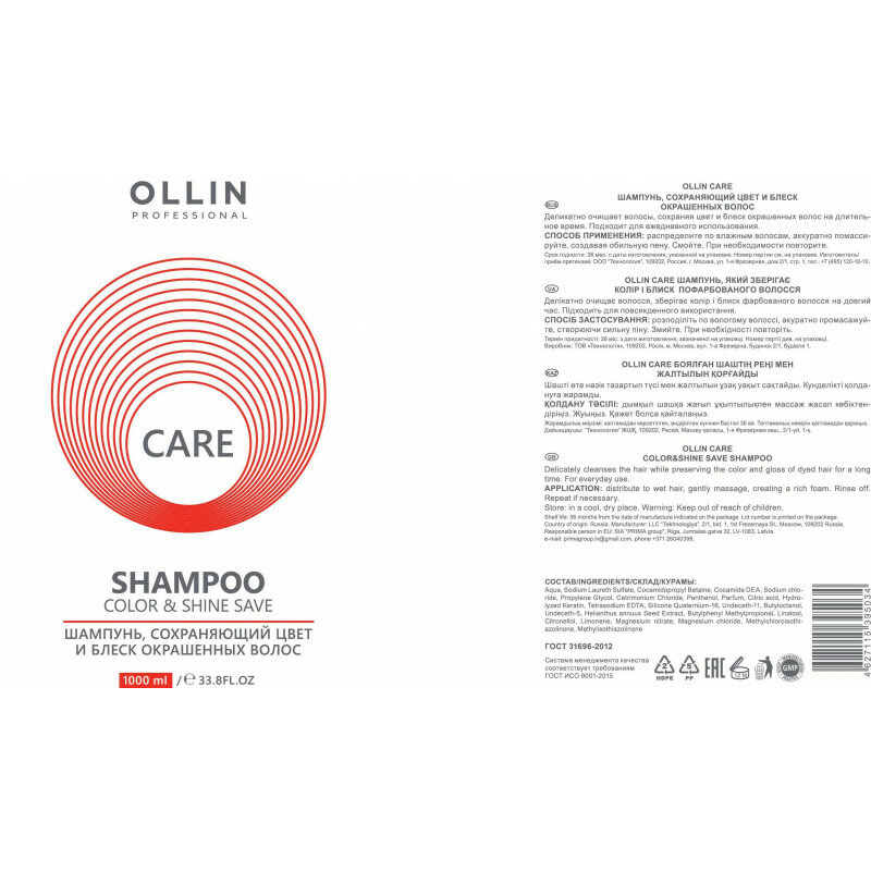 Купить Ollin Care Шампунь, сохраняющий цвет и блеск окрашенных волос Color&Shine Save Shampoo 1000мл