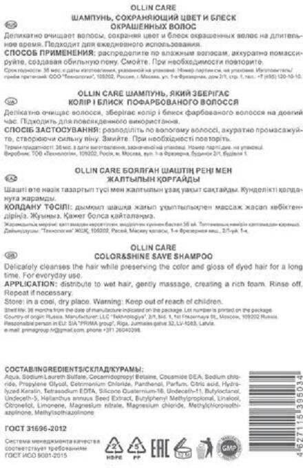 Ollin Care Шампунь, сохраняющий цвет и блеск окрашенных волос Color&Shine Save Shampoo 1000мл интересное: