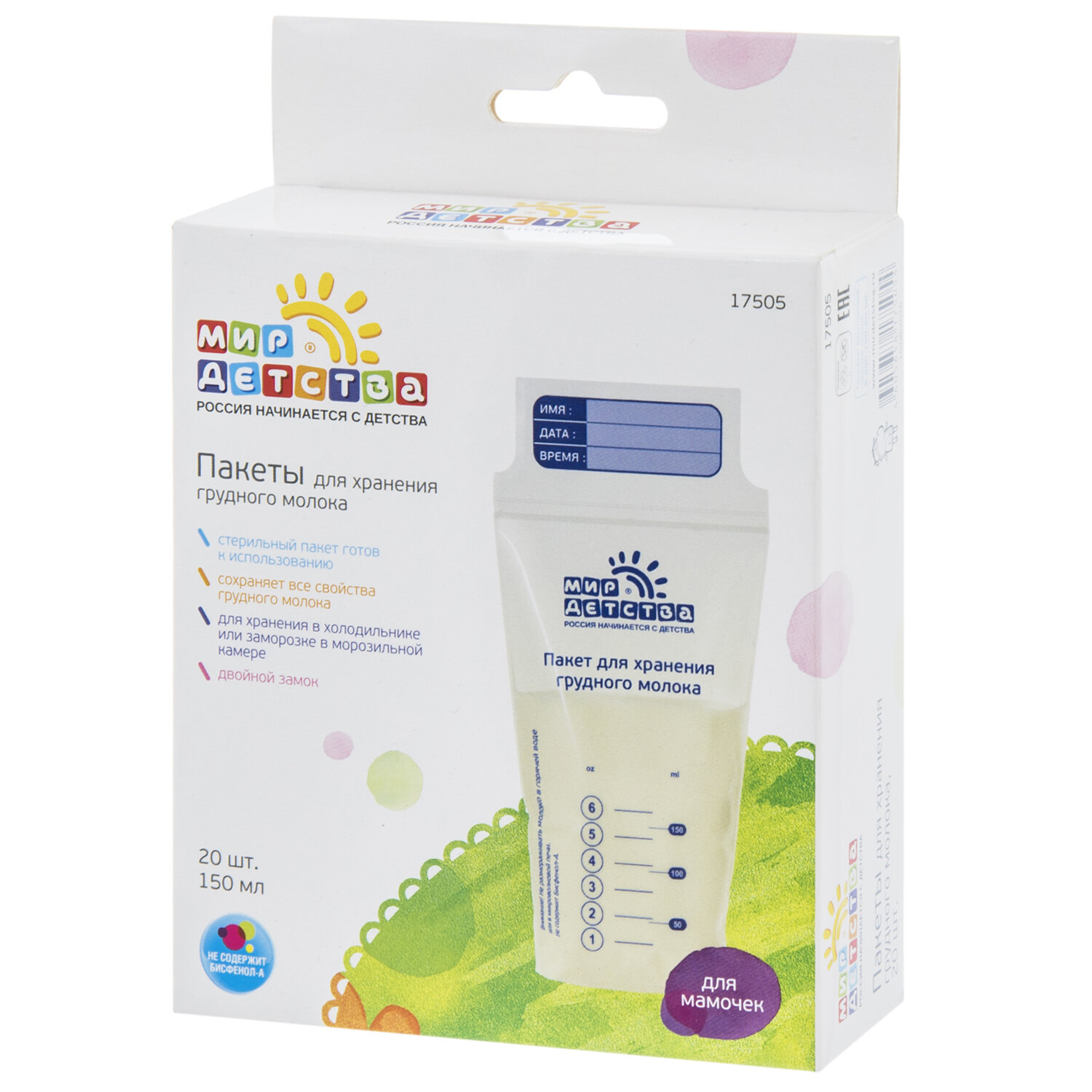 Купить Пакеты для хранения грудного молока Мир Детства 20 шт, 150 мл