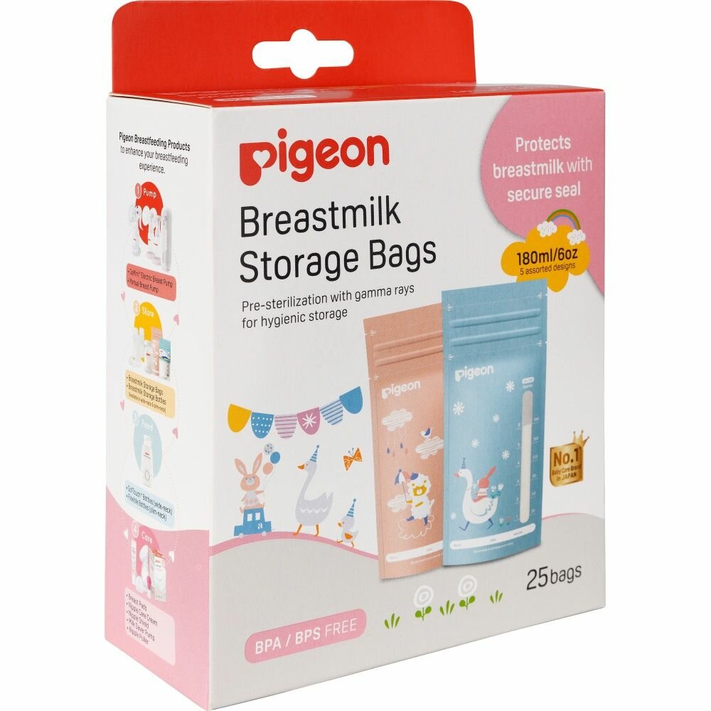 Купить Пакеты для заморозки грудного молока Pigeon 180 мл, 25 шт, Animal