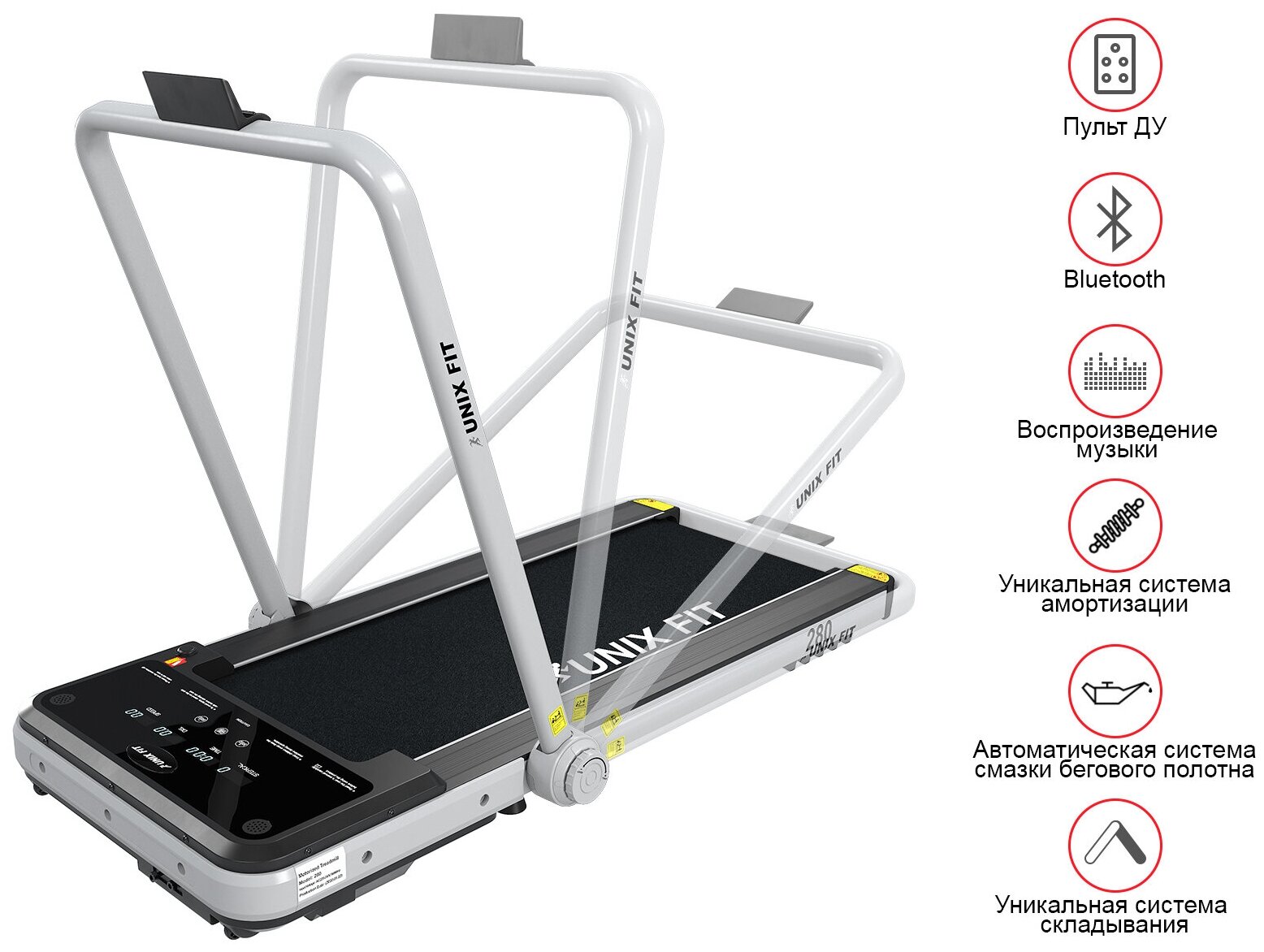 Беговая дорожка UNIX Fit R-280 с поручнем, вес до 110 кг, 2 амортизирующих суппорта UNIXFIT
