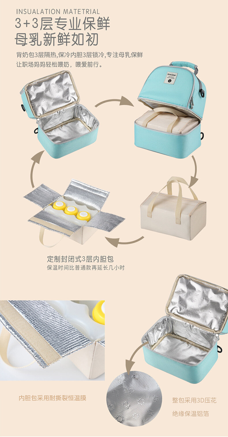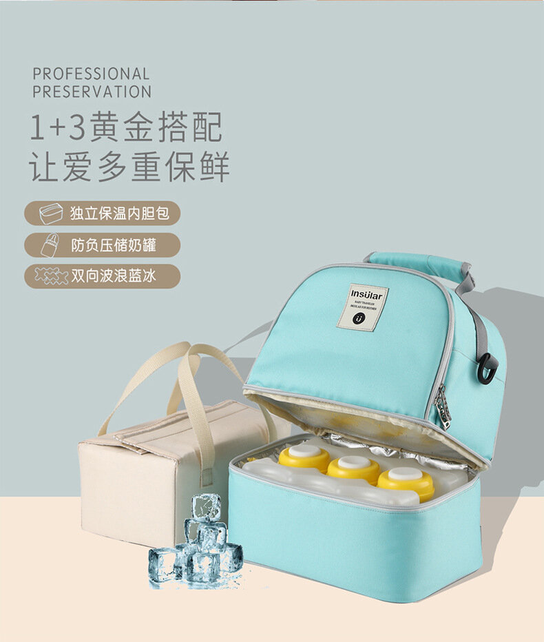 Сумка для матери и ребёнка, джинсово-синяя, 3 ёмкости для хранения молока