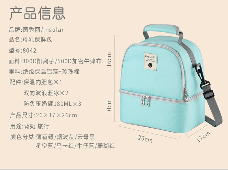 Сумка-холодильник для мамы, кораллово-розовая, 3 ёмкости для молока