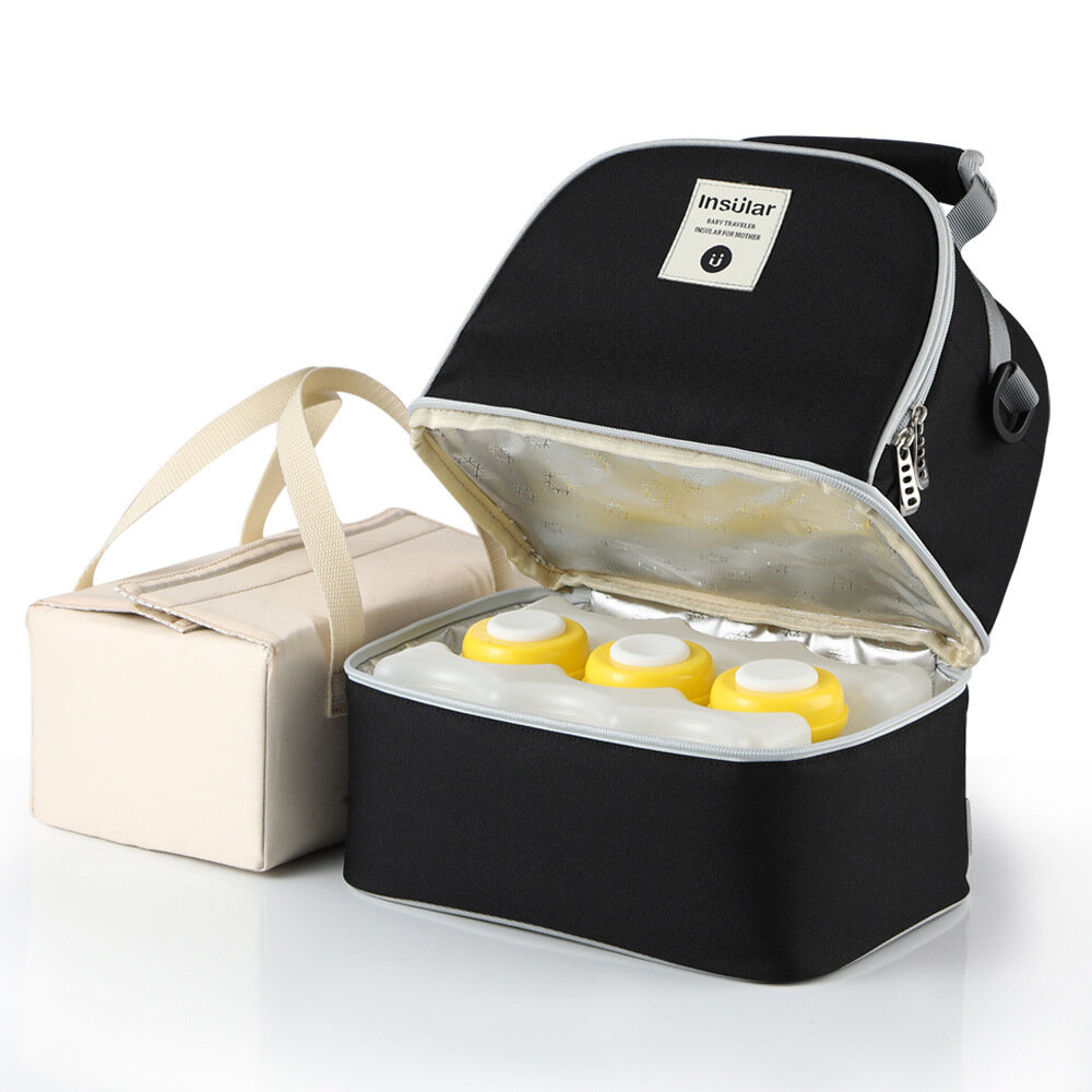 Купить Сумка-холодильник для мамы, с плечиками, 3 ёмкости для молока, слюда, чёрная
