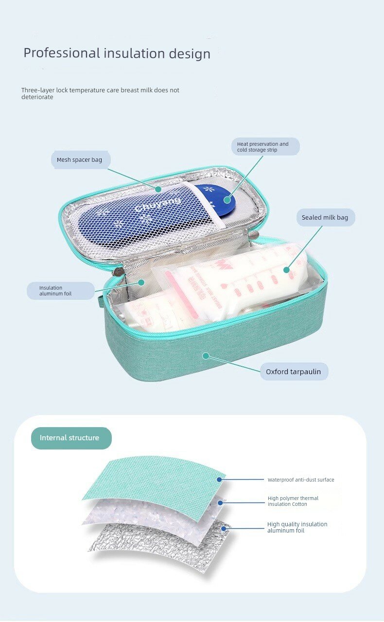 Термосумка для хранения грудного молока, светло-зеленая, с 2 пакетами льда