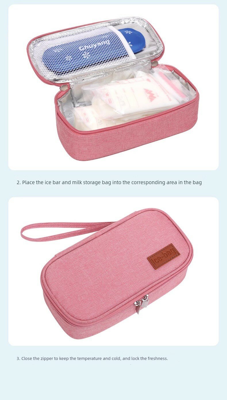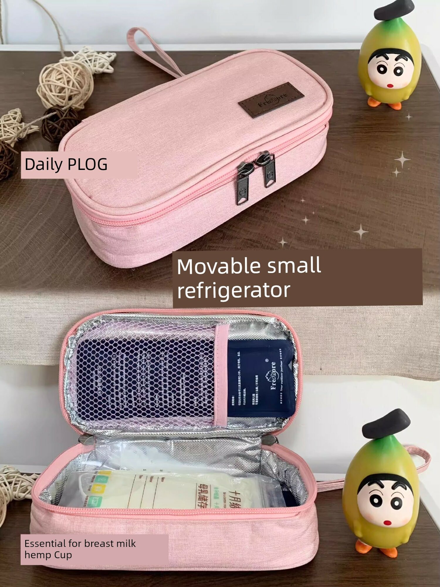 Термосумка для хранения грудного молока, розовая, с 2 пакетами льда