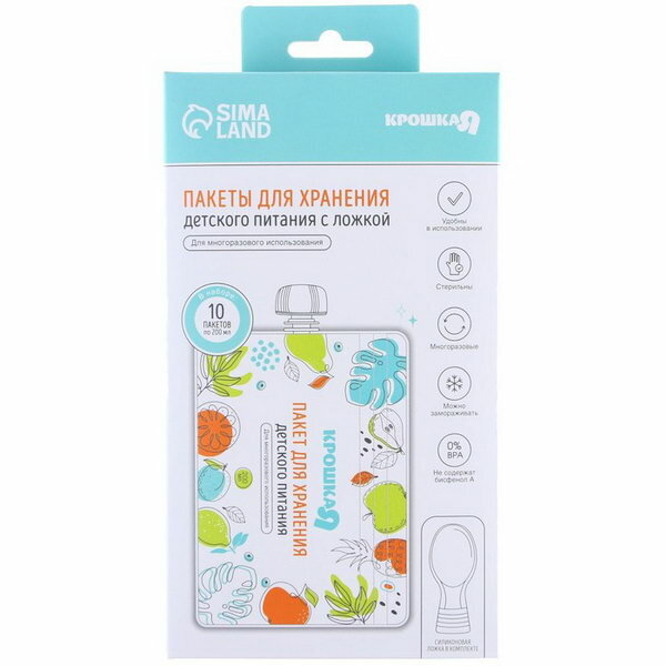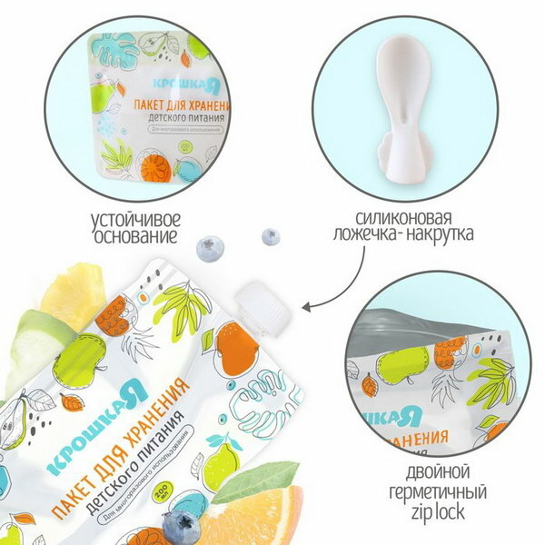 Многоразовые пауч пакеты для детского питания, с ложкой, 200 мл, набор 10 шт. интересное: