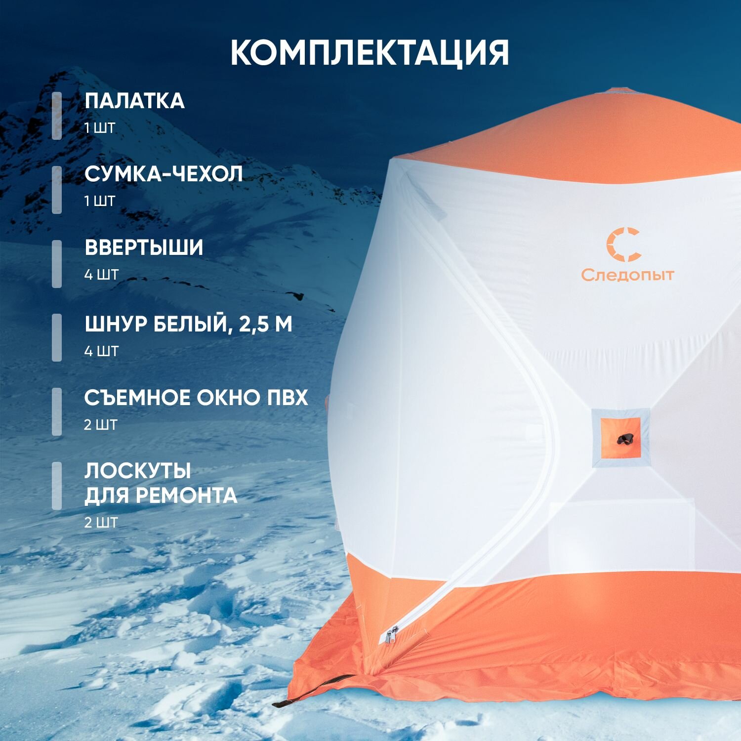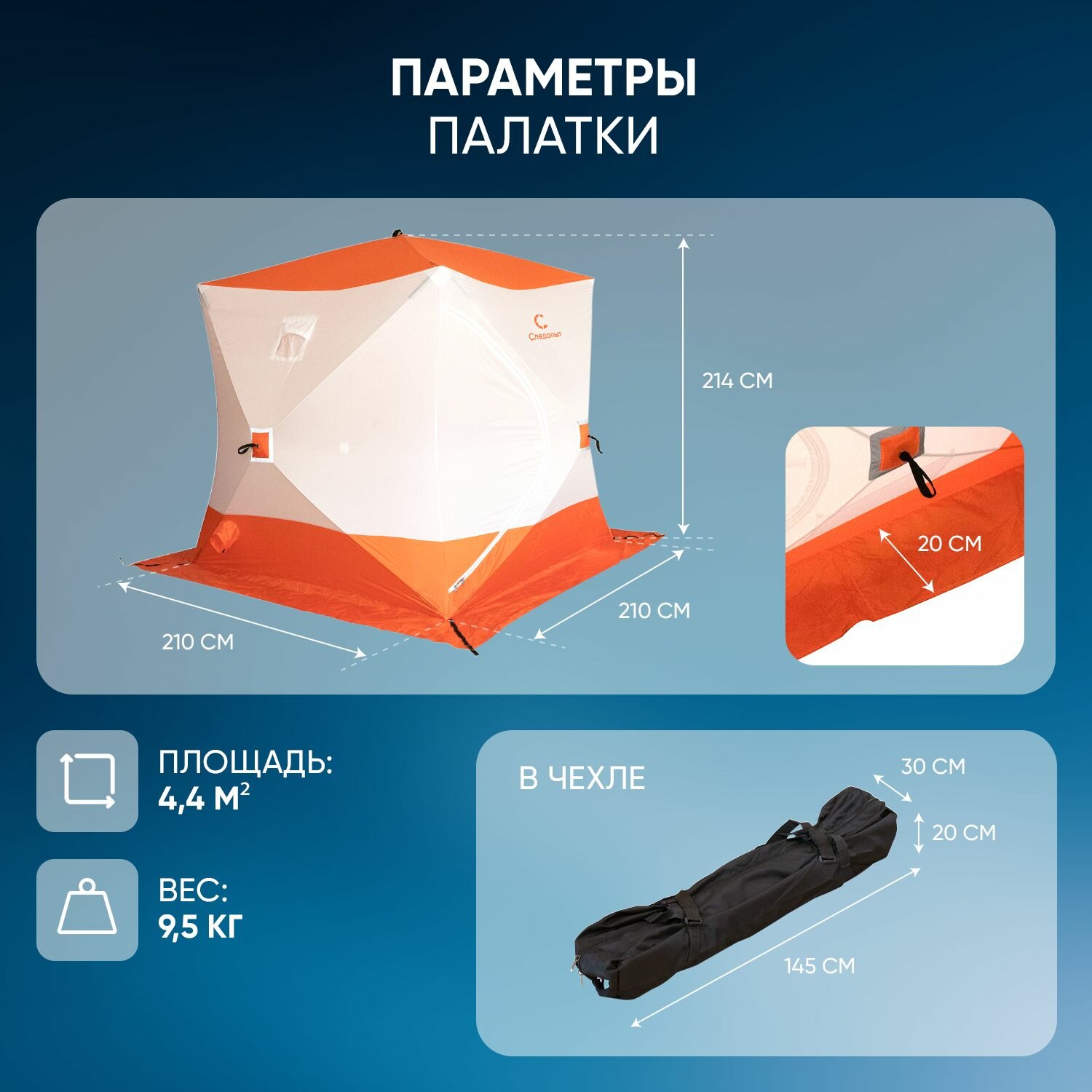 Следопыт Палатка зимняя куб "следопыт", 2.1 х 2.1 м, 4-местная, ткань оксфорд, цвет бело-оранжевый