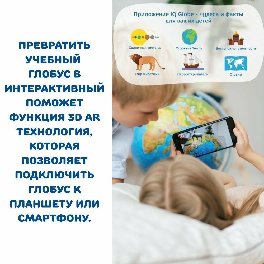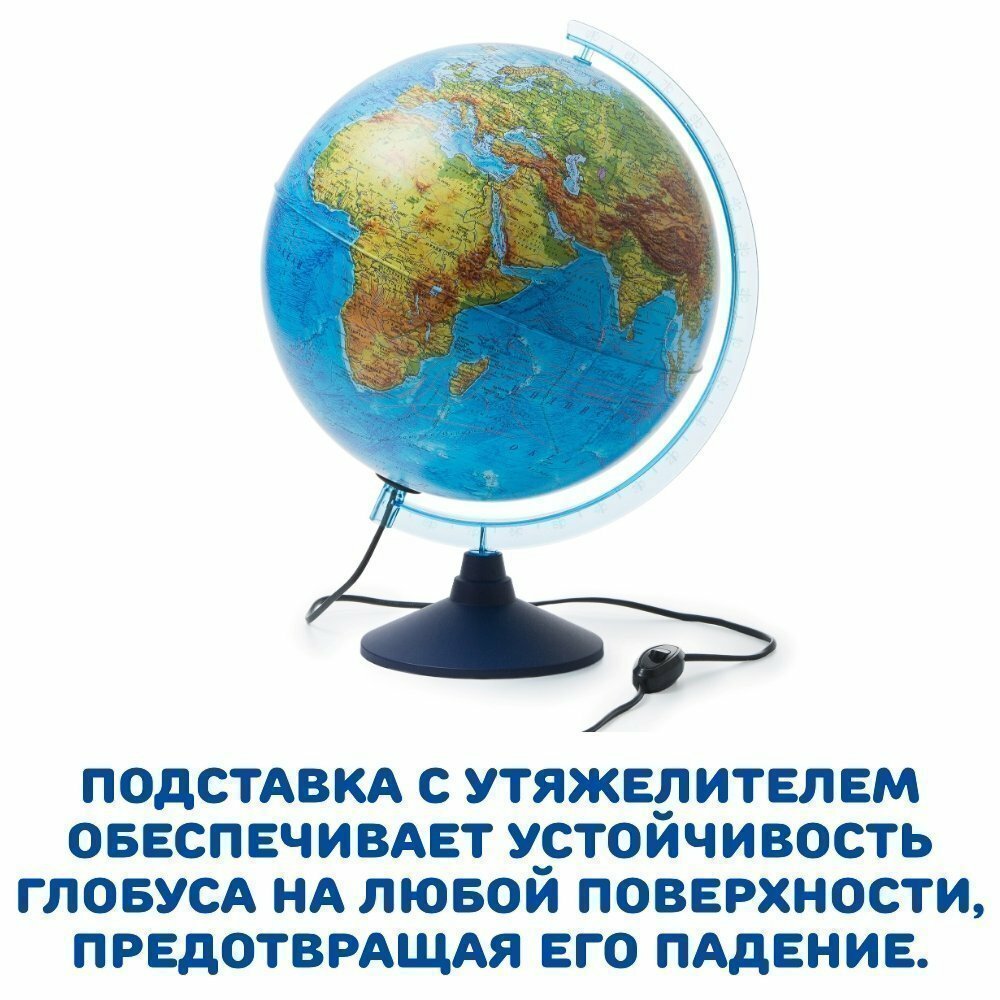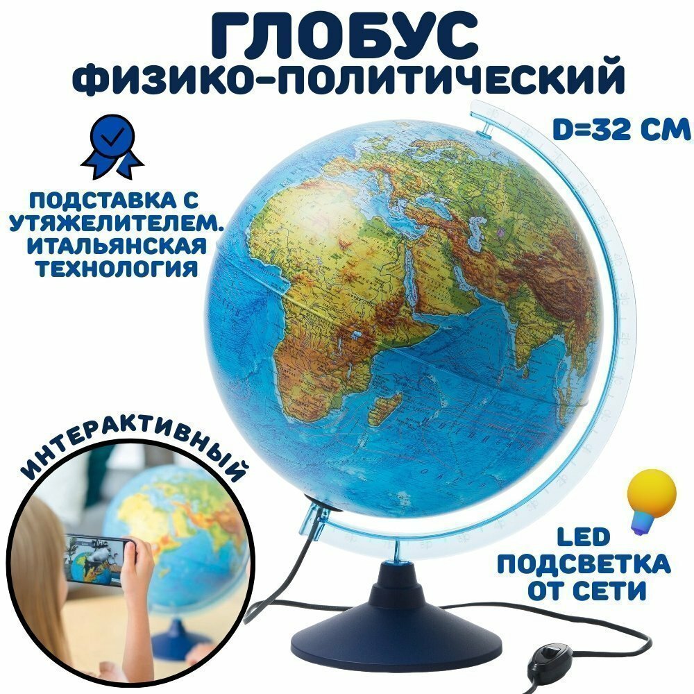 Интерактивный глобус физико-политический 32 см с подсветкой, подставка с утяжелителем GlobusOff интересное: