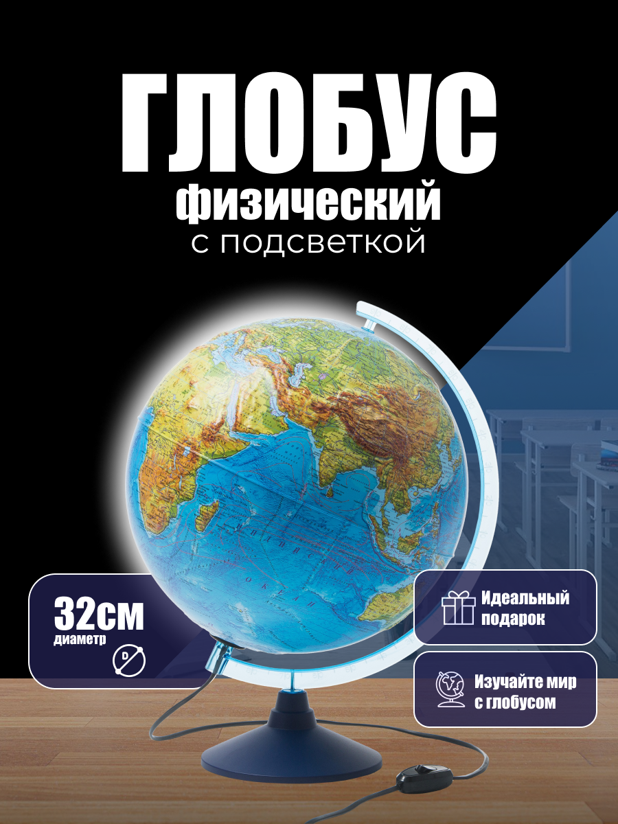 Ниже Вы можете прочитать отзывы на Глобус физический Рельефный с подсветкой диаметр 32 см Классик Евро, ознакомится с подробными характеристиками, посмотреть интересные обзоры и фотографии на Глобус физический Рельефный с подсветкой диаметр 32 см Классик Евро.