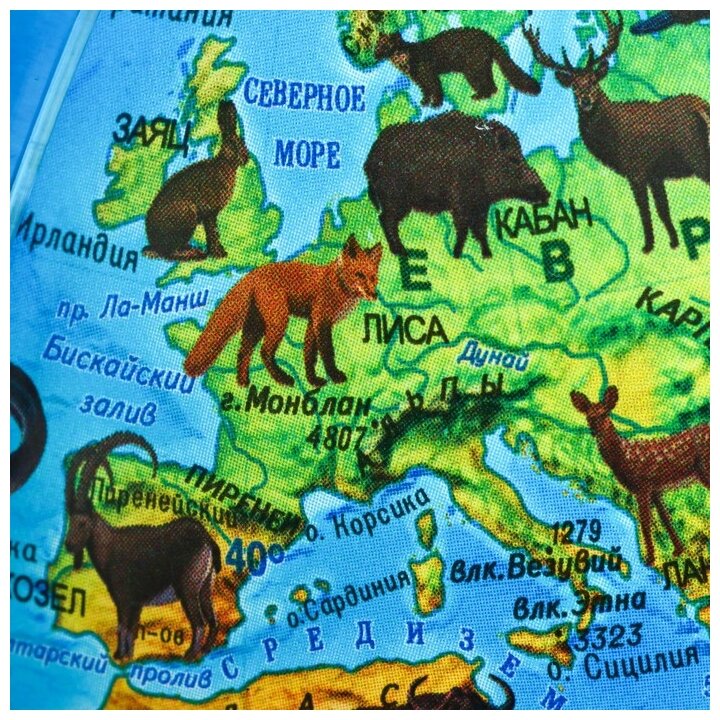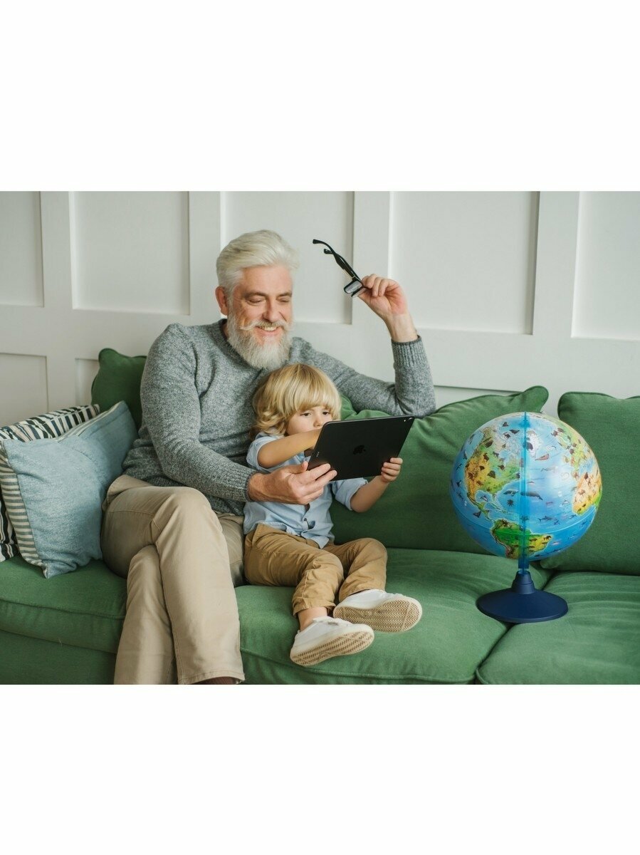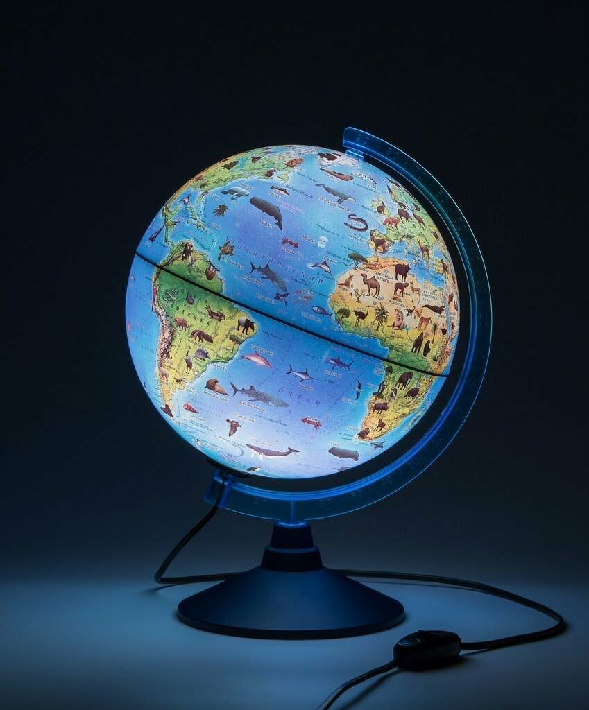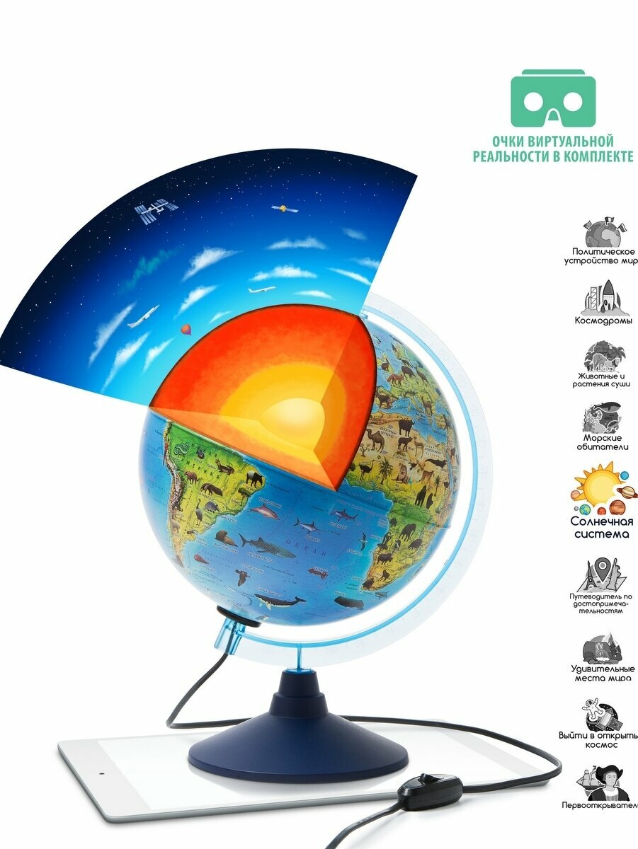 Глобус зоогеографический диаметр 21см Интерактивный Детский, с подсветкой, в комплекте очки виртуальной реальности (VR) интересное:
