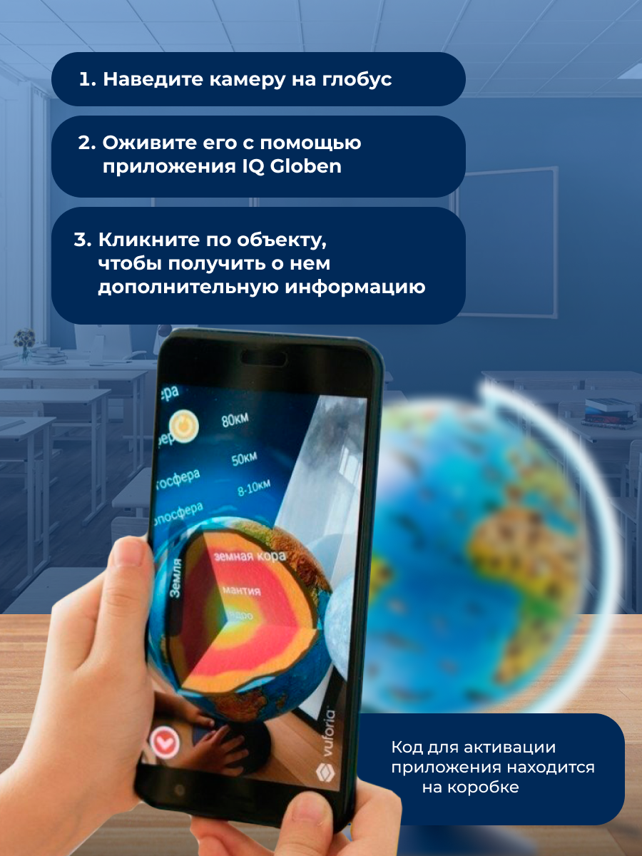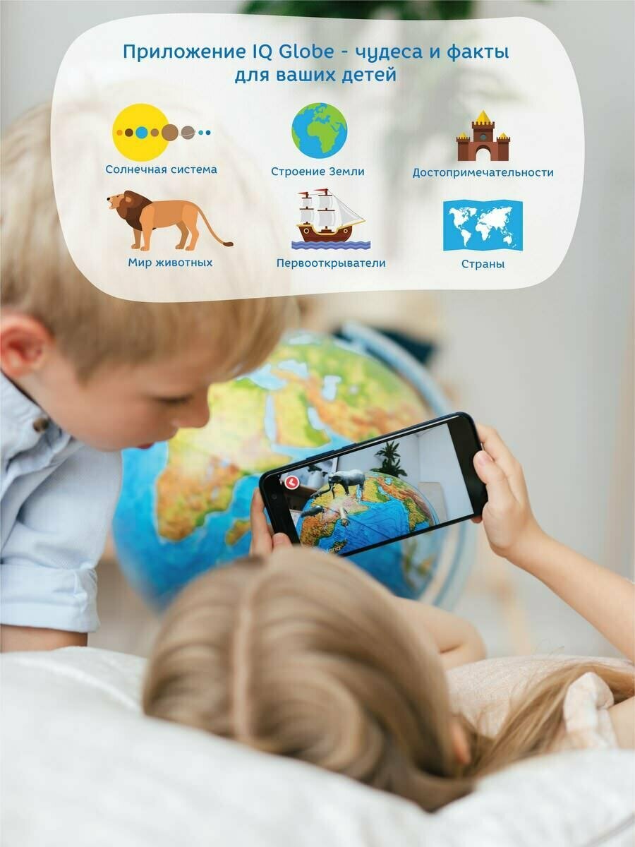 Купить Глобус зоогеографический диаметр 21см Интерактивный Детский, с подсветкой, в комплекте очки виртуальной реальности (VR)
