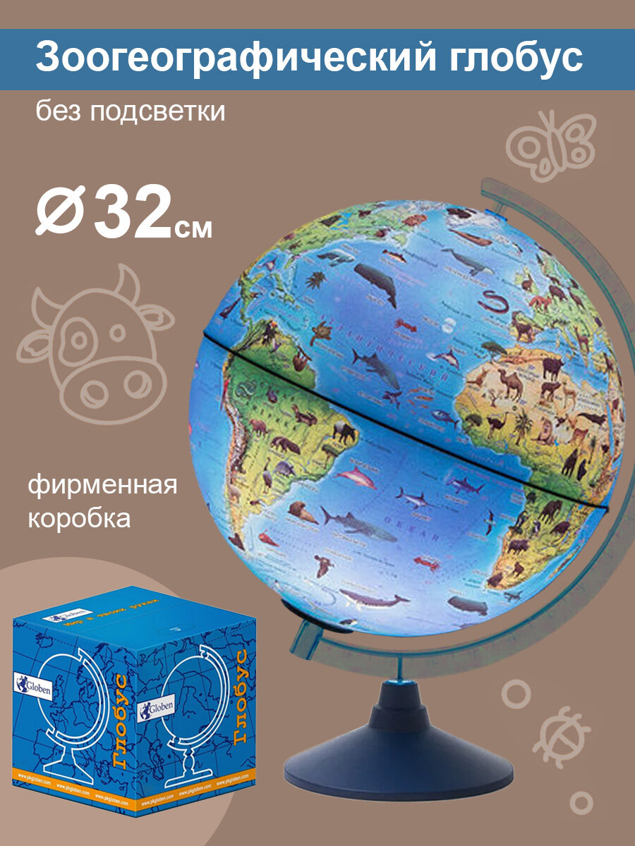 Globen Глобус Земли зоогеографический детский, диаметр 32см. интересное: