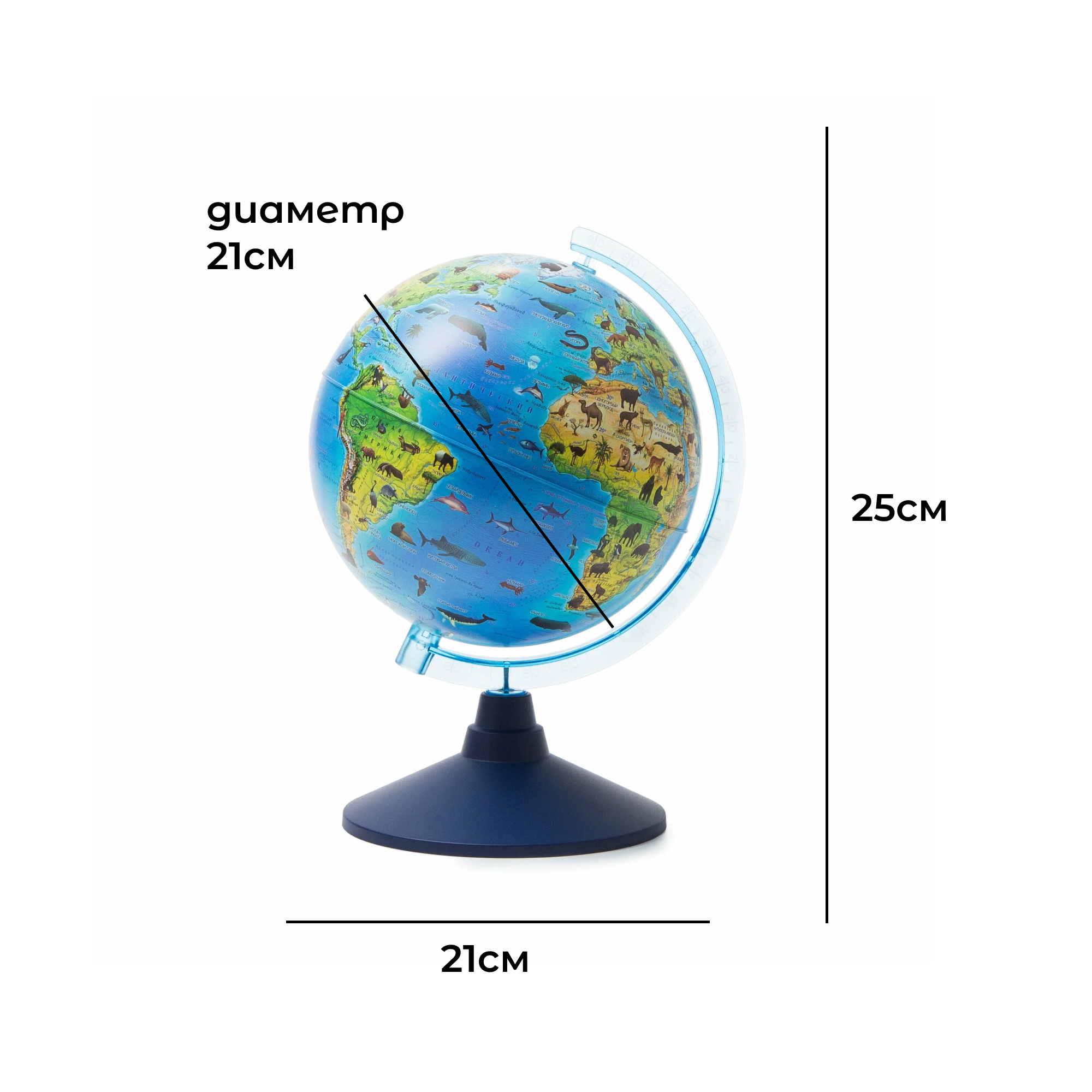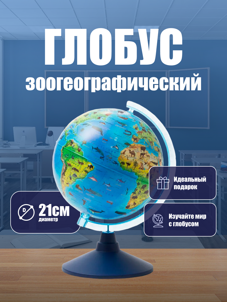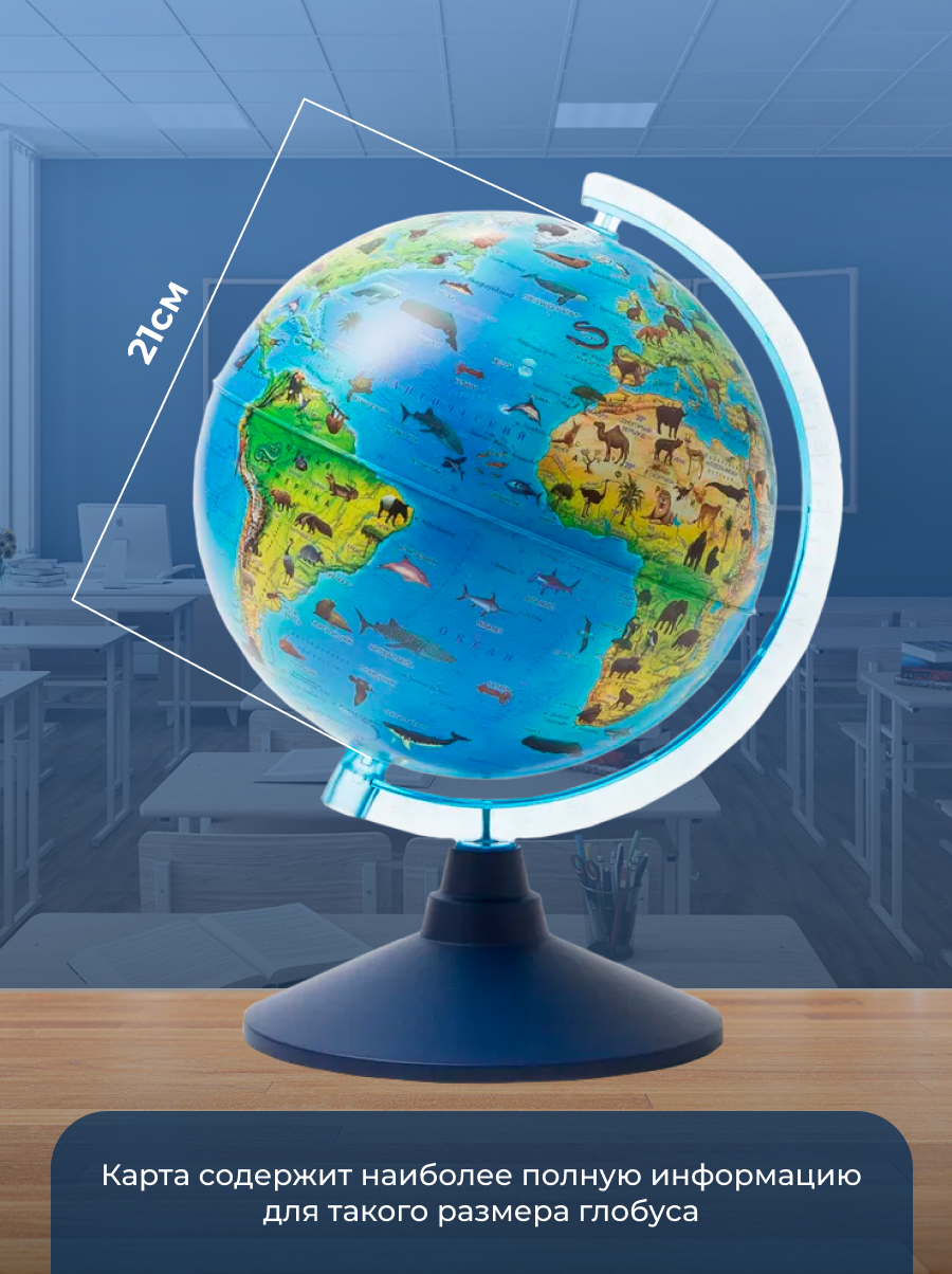Глобус зоогеографический диаметр 21см Классик Евро Детский интересное: