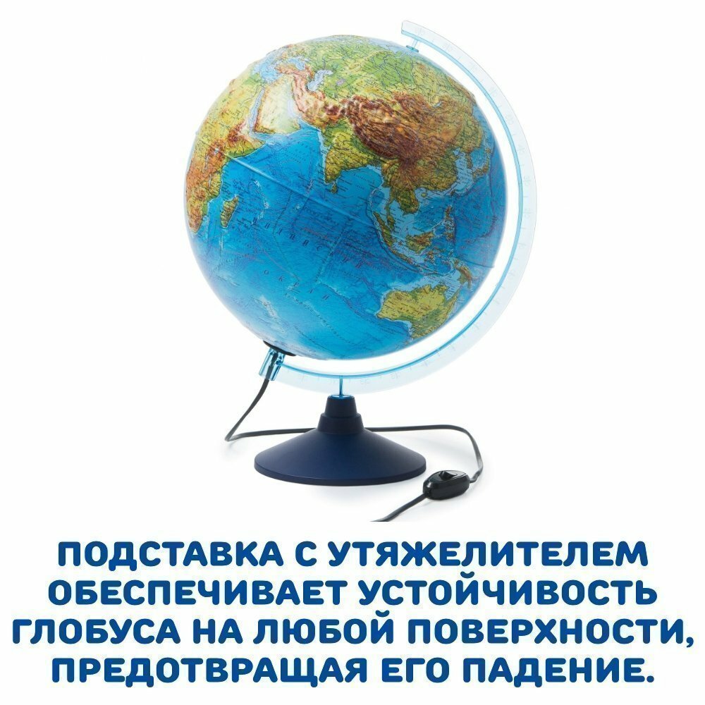 Интерактивный глобус физико-политический рельефный 32 см с подсветкой, подставка с утяжелителем GlobusOff интересное: