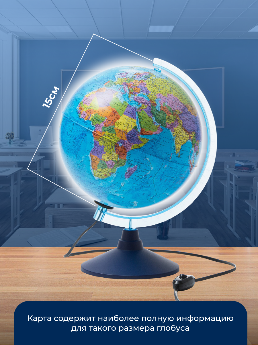 Глобус Физико-политический Globen Классик Евро диаметр 150мм, с подсветкой интересное: