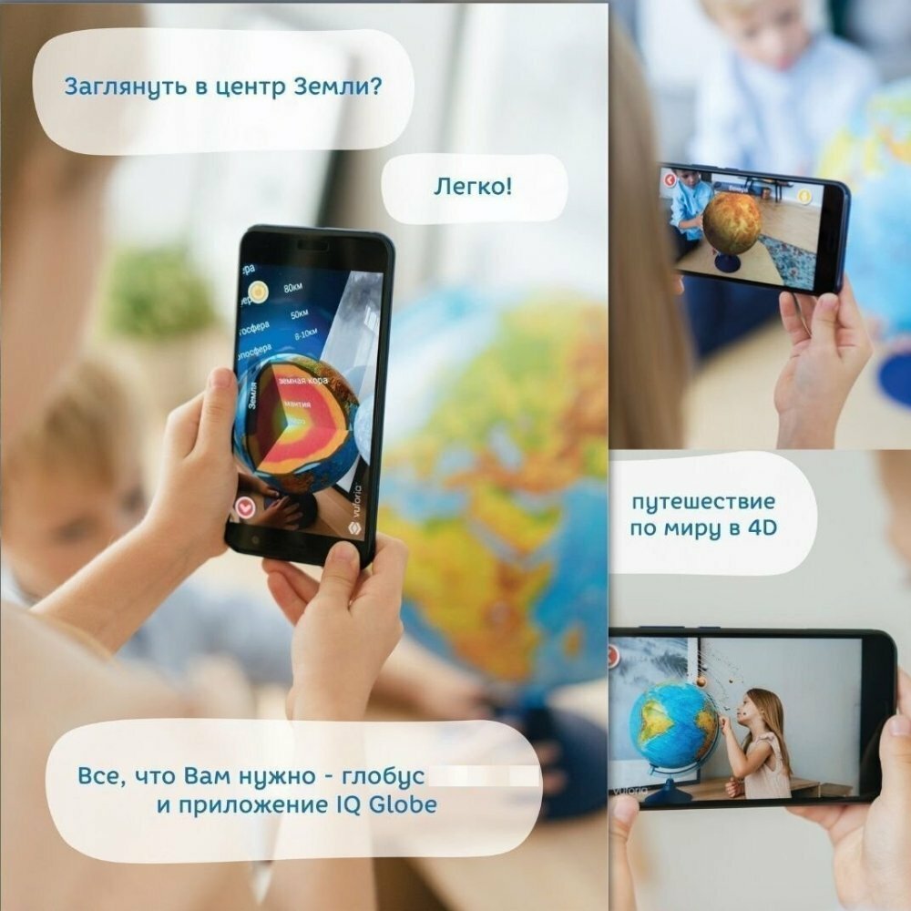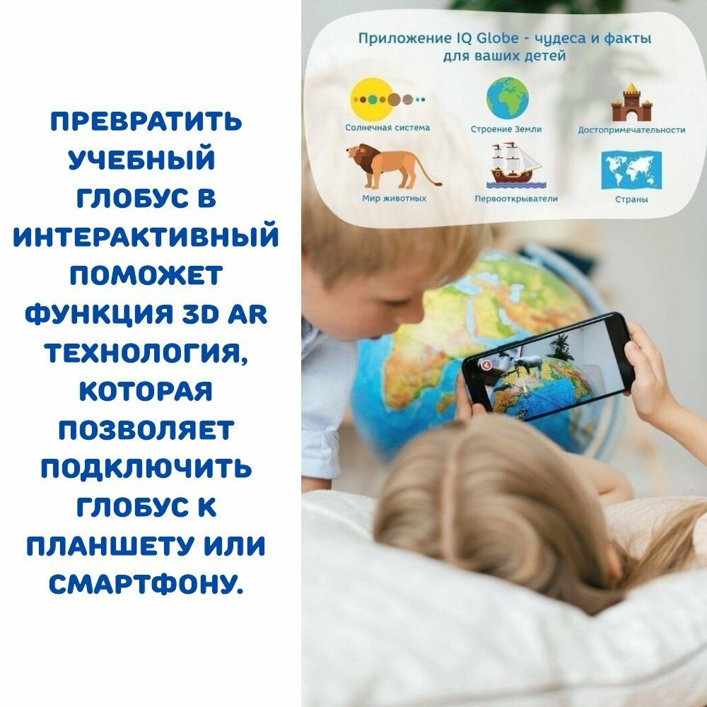 Интерактивный глобус физико-политический 32 см рельефный с подсветкой от USB, подставка с утяжелителем GlobusOff интересное: