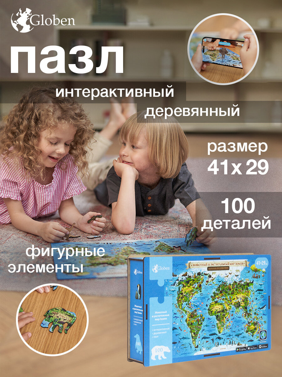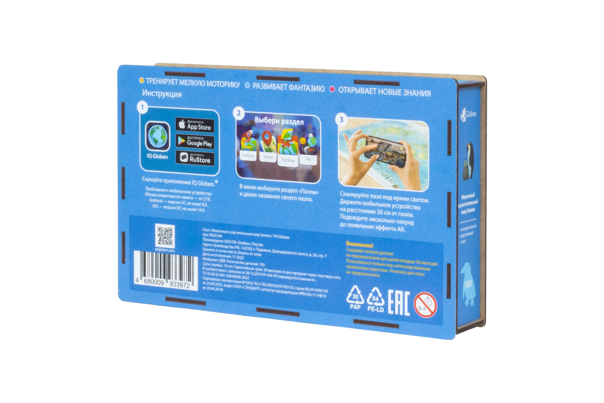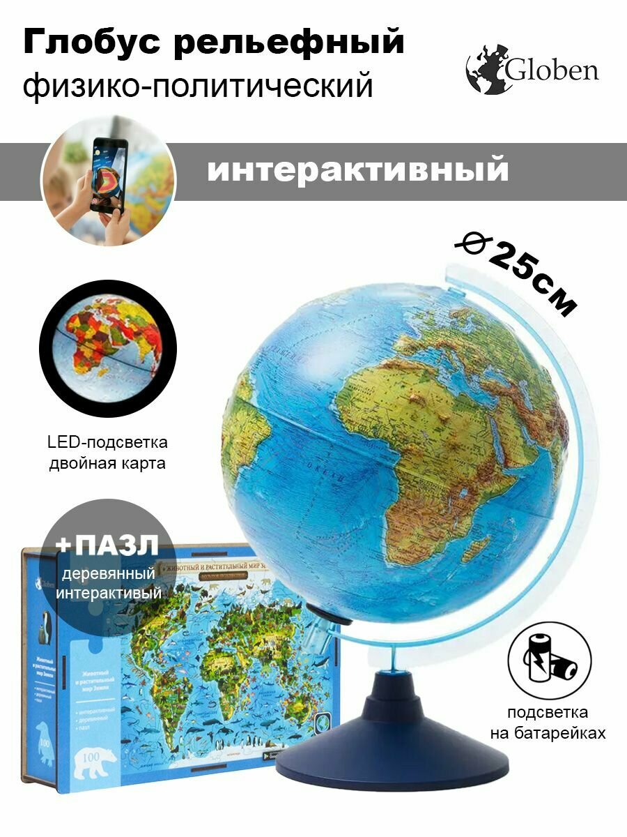 Globen Интерактивный глобус Земли физико-политический с подсветкой от батареек, 25 см. + VR-очки + Пазл деревянный интерактивный интересное: