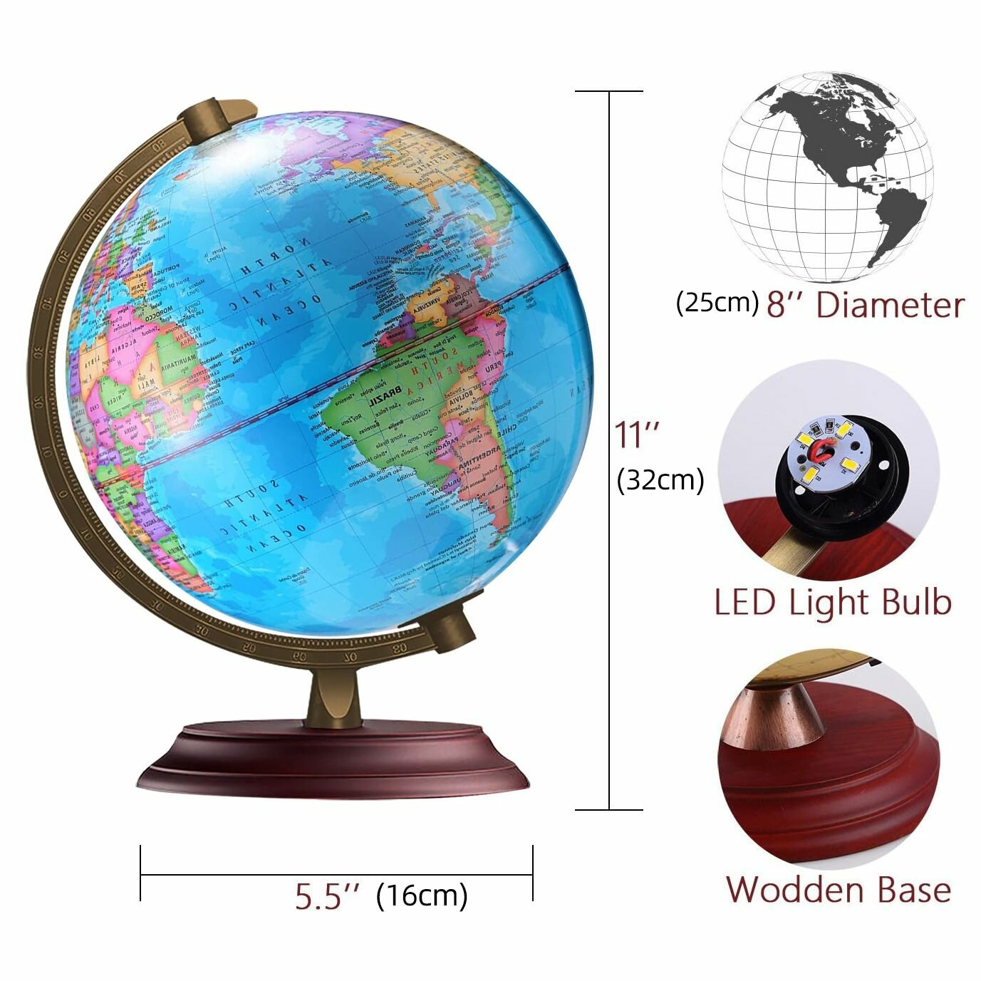Глобус Земли Globen физический-политический, с LED-подсветкой, диаметр 25см. интересное: