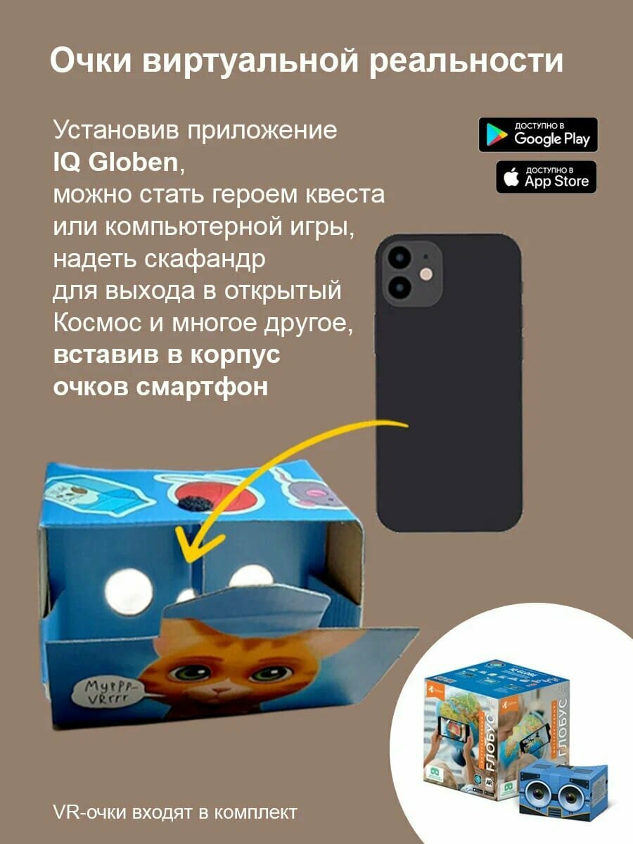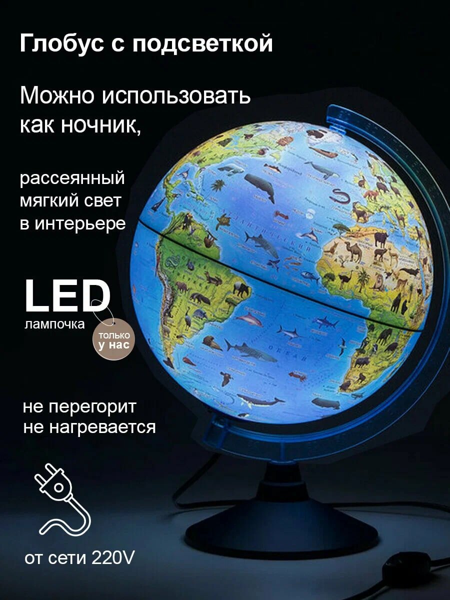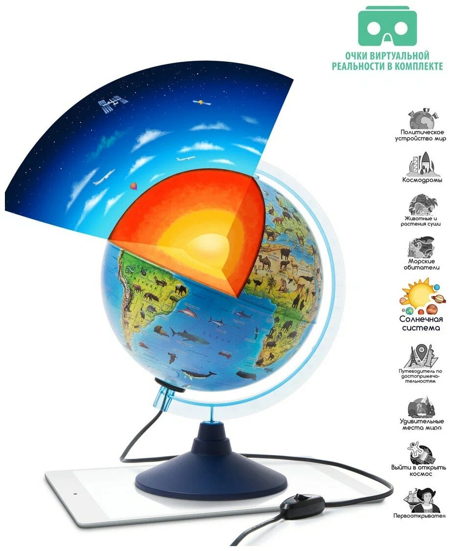 Глобус зоогеографический, интерактивный, диаметр 210 мм, с подсветкой, с очками интересное:
