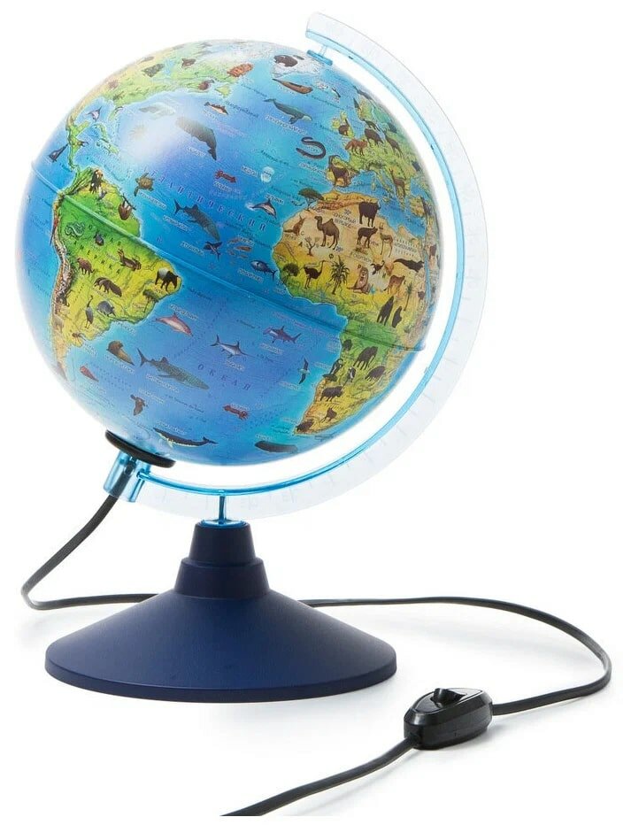 Купить Глобус зоогеографический, интерактивный, диаметр 210 мм, с подсветкой, с очками