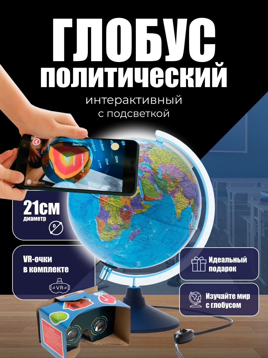 Купить Глобус политический диаметр 21 см Интерактивный с подсветкой