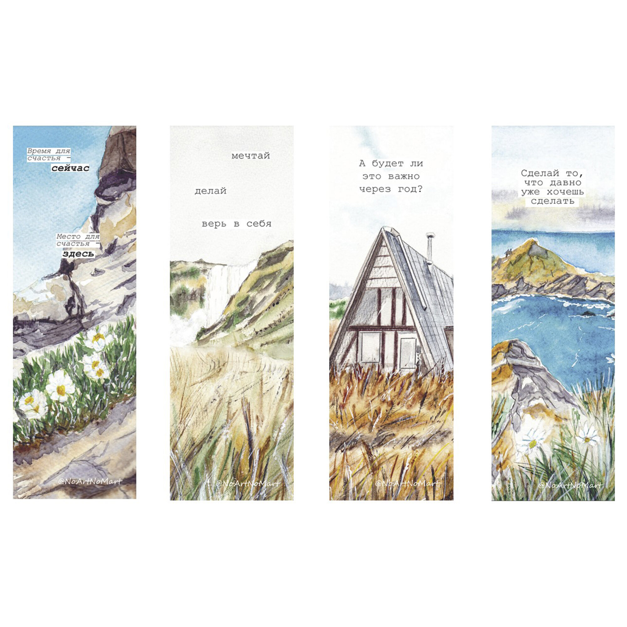 Закладки для книг "Акварели" с цитатами 4 шт. 15*5 см интересное: